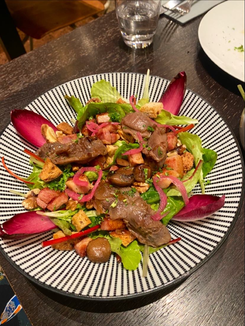 Devanture et menu très attrayant avec de nombreux classiques français - digne d’une brasserie / bouillon. Malheureusement, le service était déplorable, notre serveur a fini son shift et n’a clairement pas fait le handover de la terrasse pour sa collègue - qui est arrivée sur la terrasse longuement après que nous nous sommes assis et soyons prêts à commander : non pour servir ou observer sa section (2 tables), mais pour discuter avec ses collègues, conversation apparement très interessante car nous avons essayer de l’interpeller 3 fois, impossible. Il fallait que nous nous levions afin d’avoir l’attention d’un des trois staffs. La mousse de foie gras avait une belle présentation, nous étions très excités de goûter, malheureusement la brioche était complément rassis. Néanmoins, la mousse et l‘oignon confit avait très bon goût ! L’os à Moelle : top ! Conseillé pour un plat simple et gourmand. L’andouillette : Sèche, la sauce trop sucrée et n’allait pas avec l’andouillette. Néanmoins, les légumes glacés en accompagnement étaient parfaitement cuit.