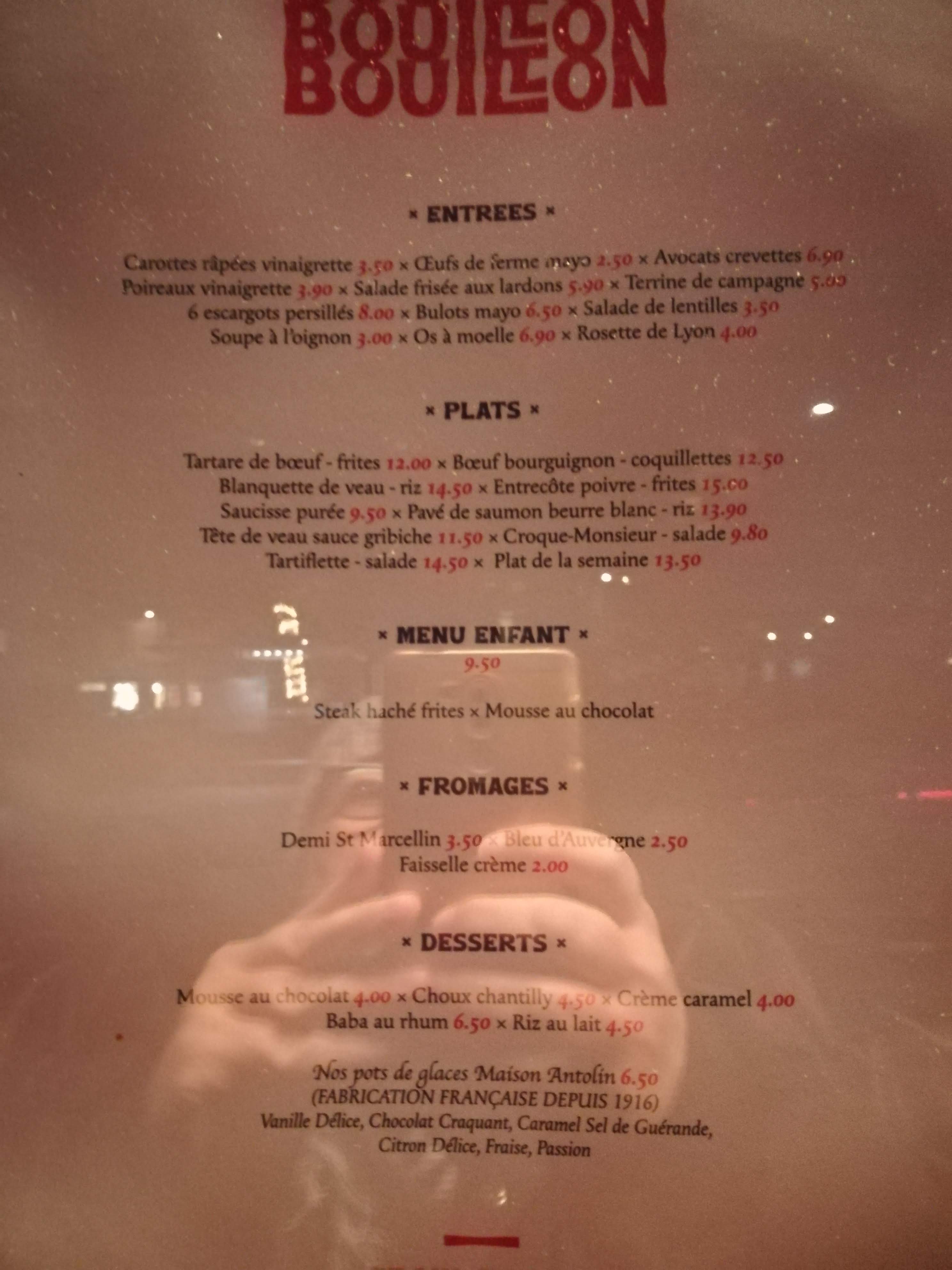 Le Bouillon lyonnais avec une dose de sophistication. Car si la carte reste modeste, comme on l'apprécie dans un bouillon, le lieu se veut assez magique (je vous conseille un petit tour aux toilettes). Je recommande !