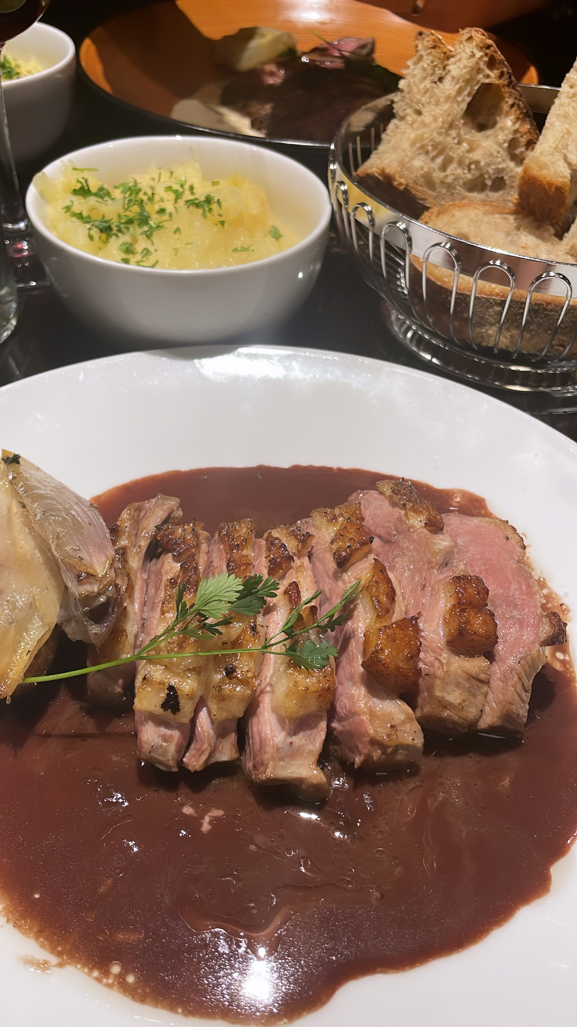 Une expérience très moyenne en raison du poulet de ma femme cru au centre et de mon canard confit insuffisamment cuit. Le gérant a proposé un dessert gratuit plutôt que de remplacer le plat principal, expliquant qu'ils étaient occupés.