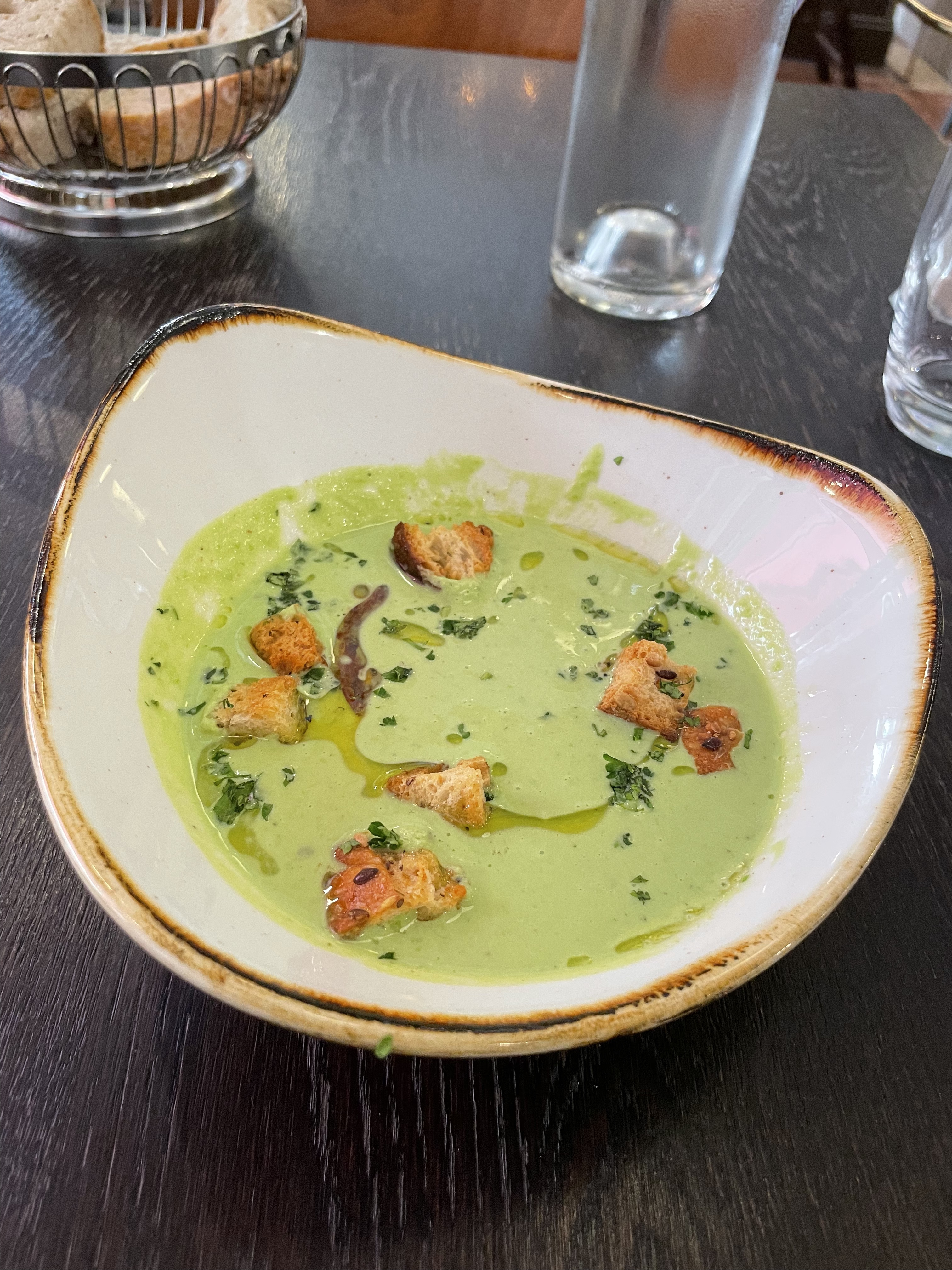J'ai choisi ce restaurant principalement parce que c'était le seul à ouvrir ses portes lors de la fête nationale de mai 2023. Apparemment, ce n'était pas mal. L'intérieur du restaurant était magnifique et dégageait une atmosphère décontractée. Service rapide. La nourriture n'était pas mauvaise étant donné sa gamme de prix sympathique. Commandé: Os à Moelle - Épaule De Porc Artichaut - Canard Confit