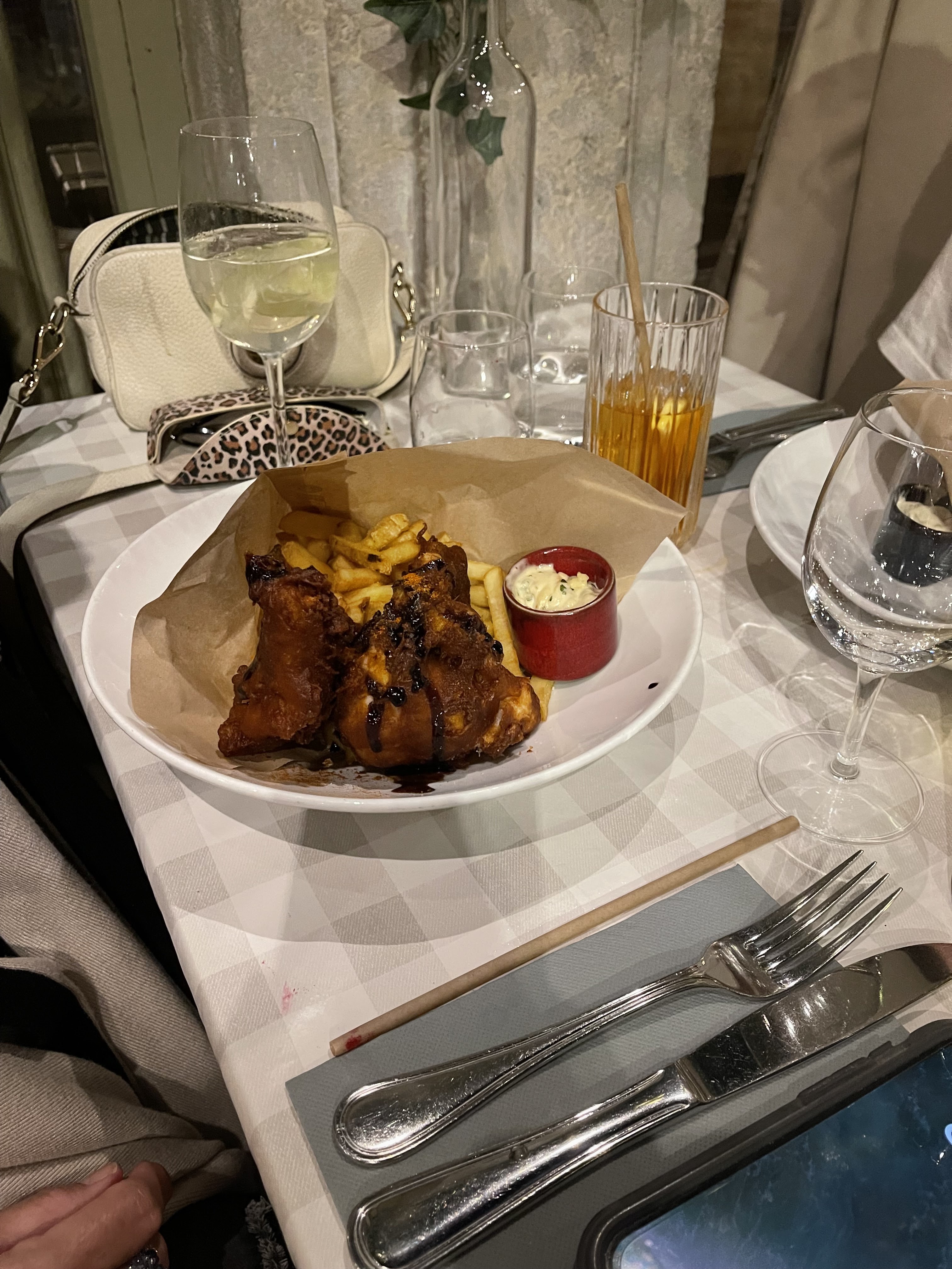 Belle surprise en cette fin de soiree!. Le cadre est chouette. La serveuse a été souriante et efficace. La sauce tartare et le poisson du fish and chips étaient vraiment délicieux. Les frites industrielles n'étaient pas à mon goût mais à refaire avec plaisir surement avec un autre accompagnement ou un autre plat mais cette fois je n'oublierai pas de prendre des photos et de tester le poiré.