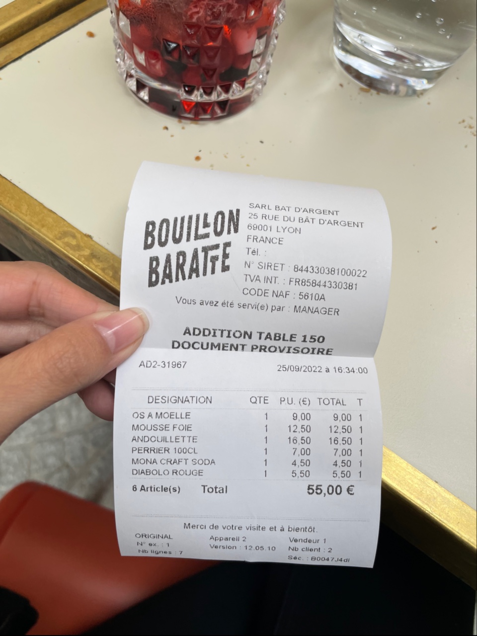 Nous avons passé une expérience assez désagréable au restaurant Bouillon Barate… Nous avions réservé une table pour 11 personnes, nous voulions un restaurant avec des plats traditionnels lyonnais et des plats un peu plus atypiques. Les plats étaient très bons, j’en fais les compliments à la cuisine ! Le filet de canard était divin. Quant au service, j’ai trouvé inadmissible la façon de parler de notre serveuse ainsi que le serveur qui l’a aidé pour porter les plats. Nous avions demandé du vin en même temps que nos plats chauds. Lorsque nous faisons la remarque poliment, la serveuse nous répond « oh mais vous êtes pas la seule table que je dois servir ! ». Je précise que cette remarque a été dites quand nous étions à la moitié de nos plats. Nous avons donc attendu le vin… que nous avons finalement bu à la fin. La serveuse était froide, nous a adressé aucun sourire ou bienveillance durant ce repas, ça en devenait même gênant. Nous avions également commandé la pièce du boucher SANS la sauce saint Marcelin. Le plat est arrivé avec des morceaux qui baignaient dans la sauce. Lorsqu’on fait part au serveur de l’erreur, le monsieur nous dit « je connais mon métier ! » et repars. Je ne sais pas ce qu’il s’est passé ce jour là, la raison pour laquelle les serveurs étaient « de mauvaise humeur » mais lorsqu’on va dans un restaurant et que l’on débourse près de 580 euros pour une table, on s’attend quand même à un service digne de ce nom. L’hygiène des toilettes était déplorable. Je n’avais jamais vu ça de ma vie. Une odeur nauséabonde sortait des toilettes jusque dans la salle. Il y avait de l’urine partout, même sur les carreaux de carrelage des toilettes. La poubelle débordait de déchets. En voici les images.