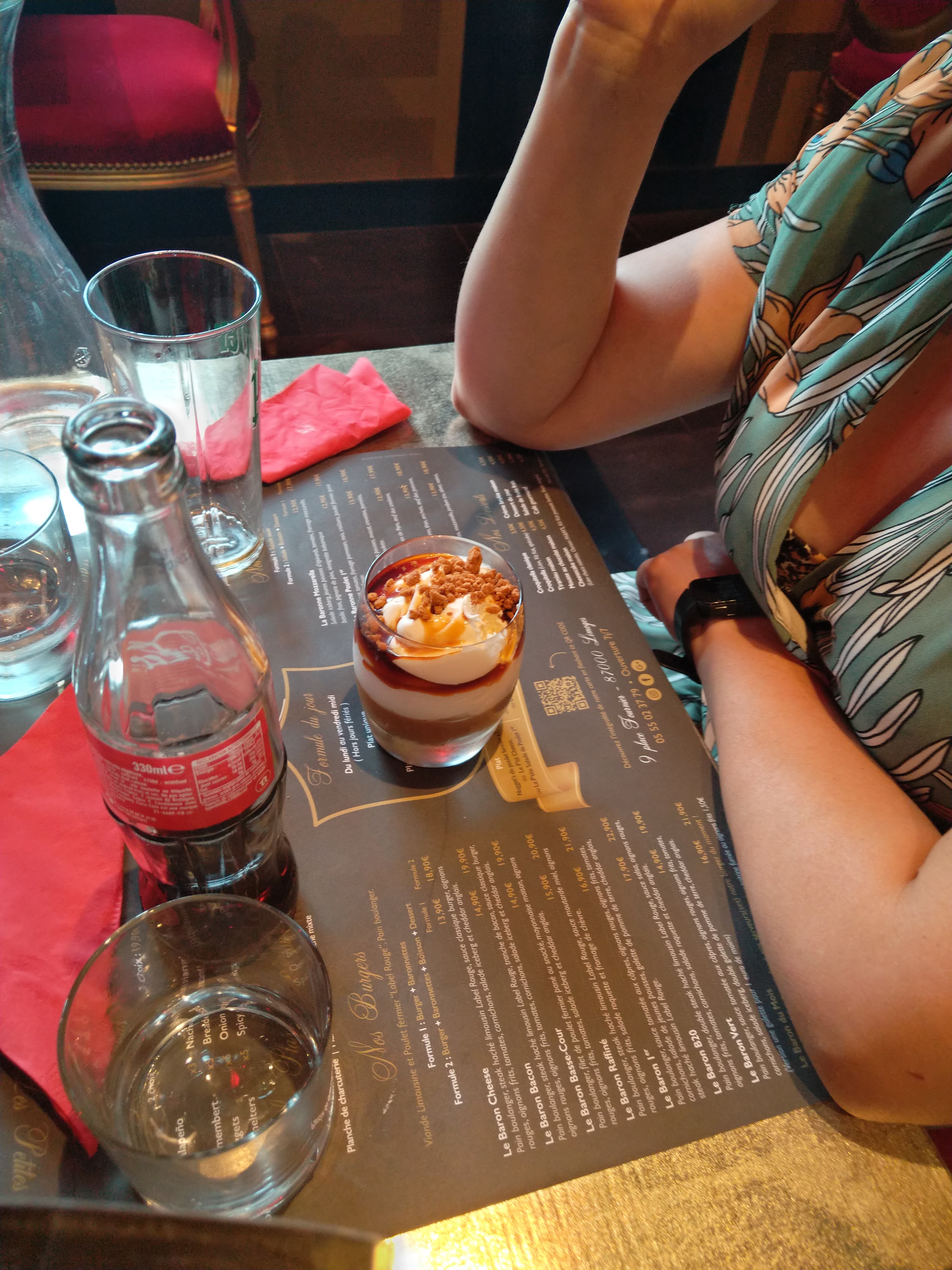 Repas OK :frites et burger convenables pour etre honnete cependant, 1h après le repas j'ai subis de gros problèmes de transit (pendant 1 journée) avec un intestin irritable. je pense avoir mal digéré le burger baron rafiné je mets tout de même 2* pour l'accueil