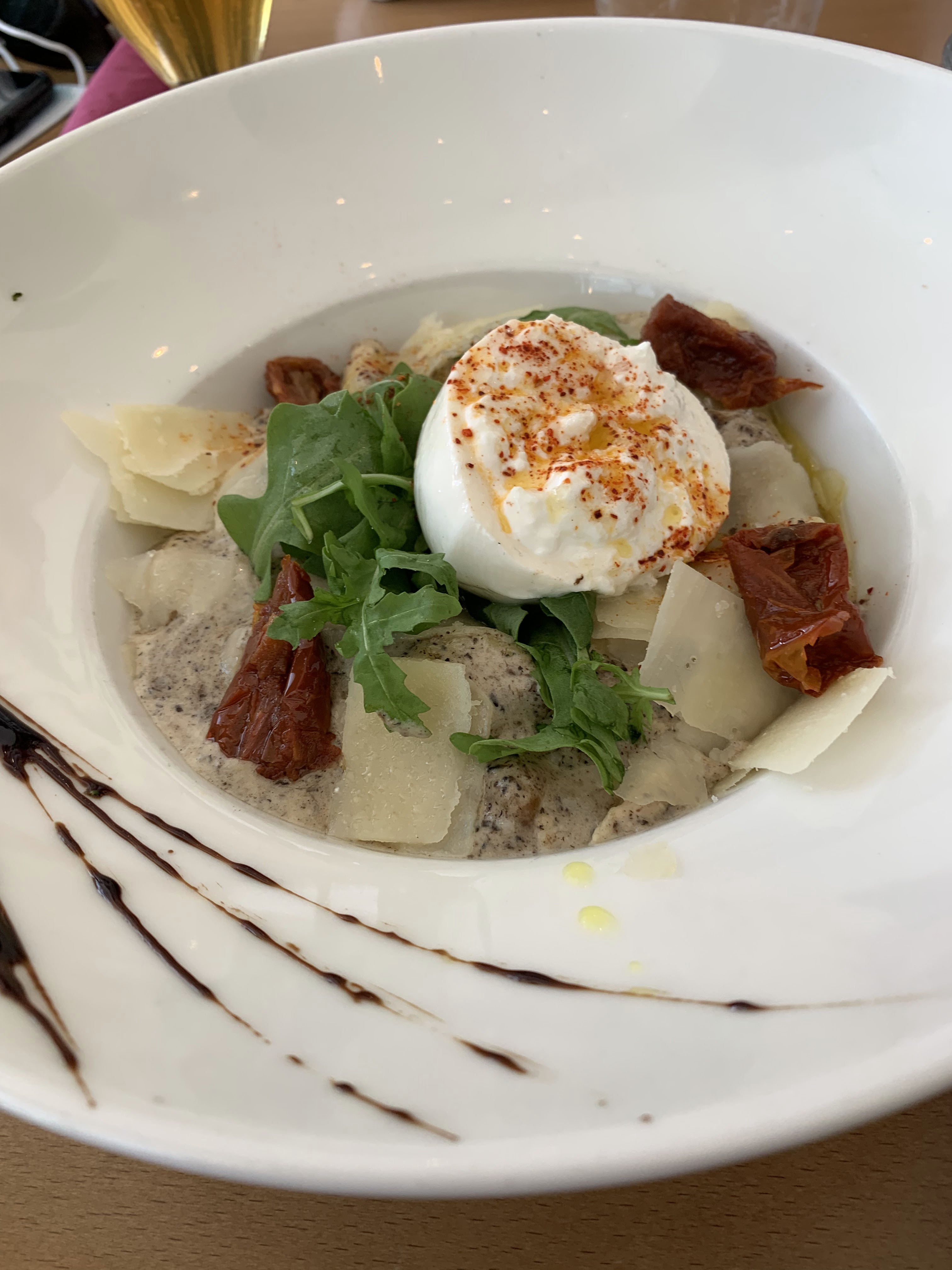 Bon mais un peu trop chère 29e pour une pression, plat raviolis frais, café gourmand