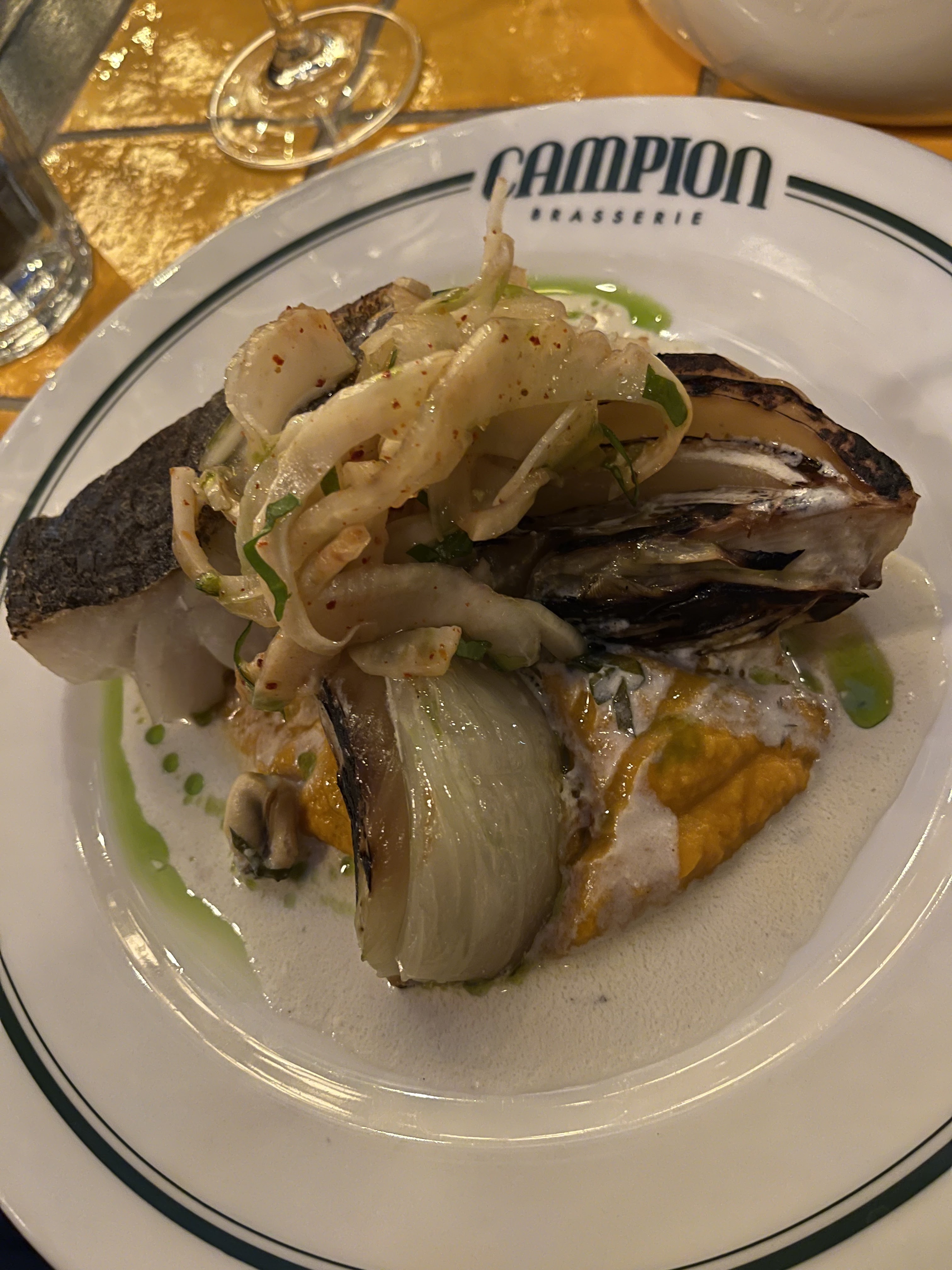 Très belle soirée passée à la Brasserie Campion, dans un très beau décor. Les entrées sont très bonnes : on a goûté la salade de choux de Bruxelles et le gravlax. Plats principaux copieux; la pêche du jour excellente… Le Paris-Brest toujours aussi incroyable. Pour le vin, une bouteille de Fitou 2019 a charmé nos papilles. Le tout servi par un personnel (en rodage) super sympa et à l’écoute.