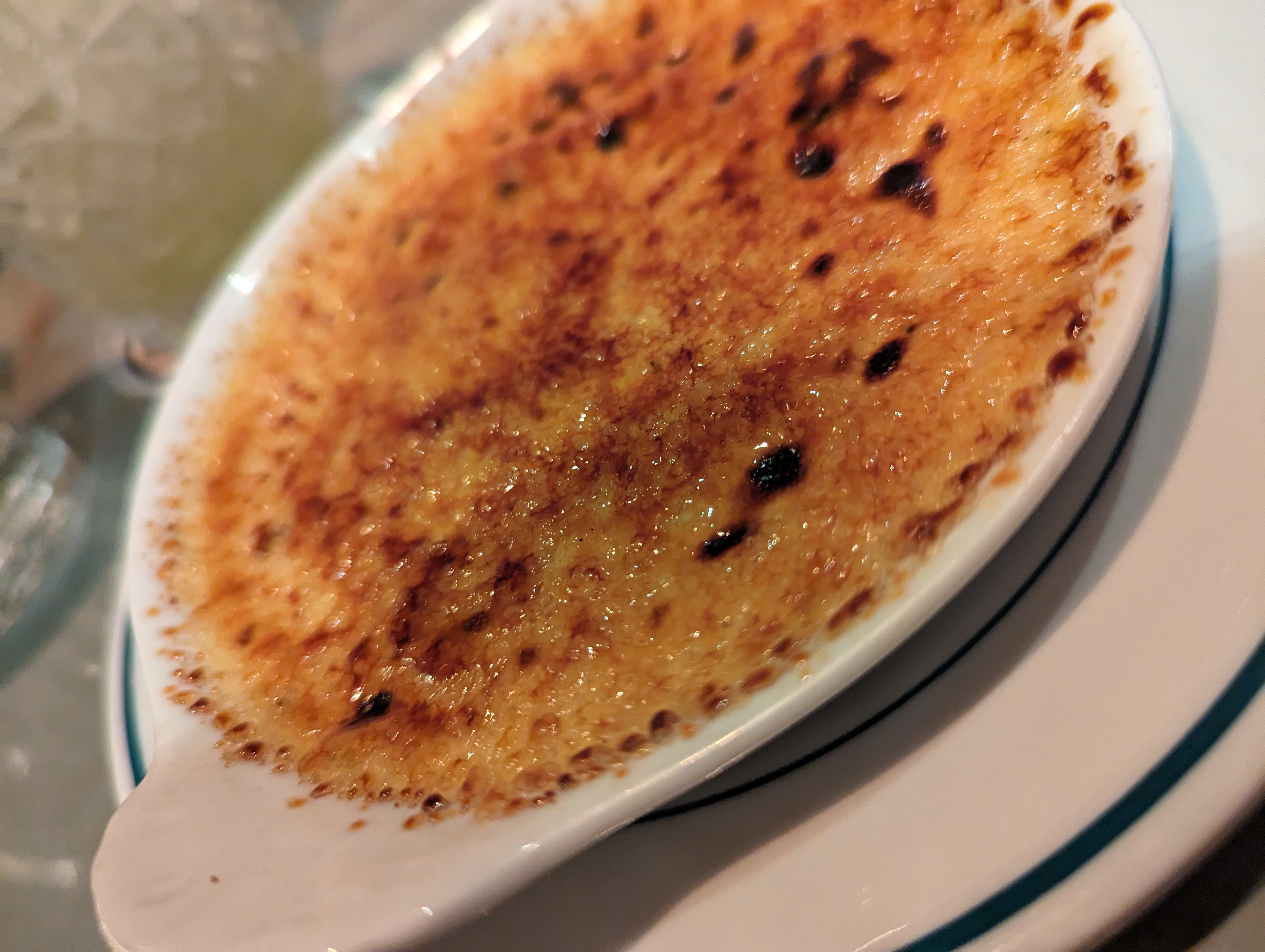J’ai mangé la carbonnade. Et même si j’adore les revisites, celle-ci ne m’a pas plu et j’en suis désolé. C’était bon mais cela ne m’a pas rappelé la carbonnade . Des morceaux de boeufs cuits, effilés, mis à emporte pièce puis grillé comme un steak haché, ce n’est pas une carbonnade pour moi. Mais encore une fois, cela n’est que mon avis. Le parfait glacé est délicieux. Le service précautionneux.