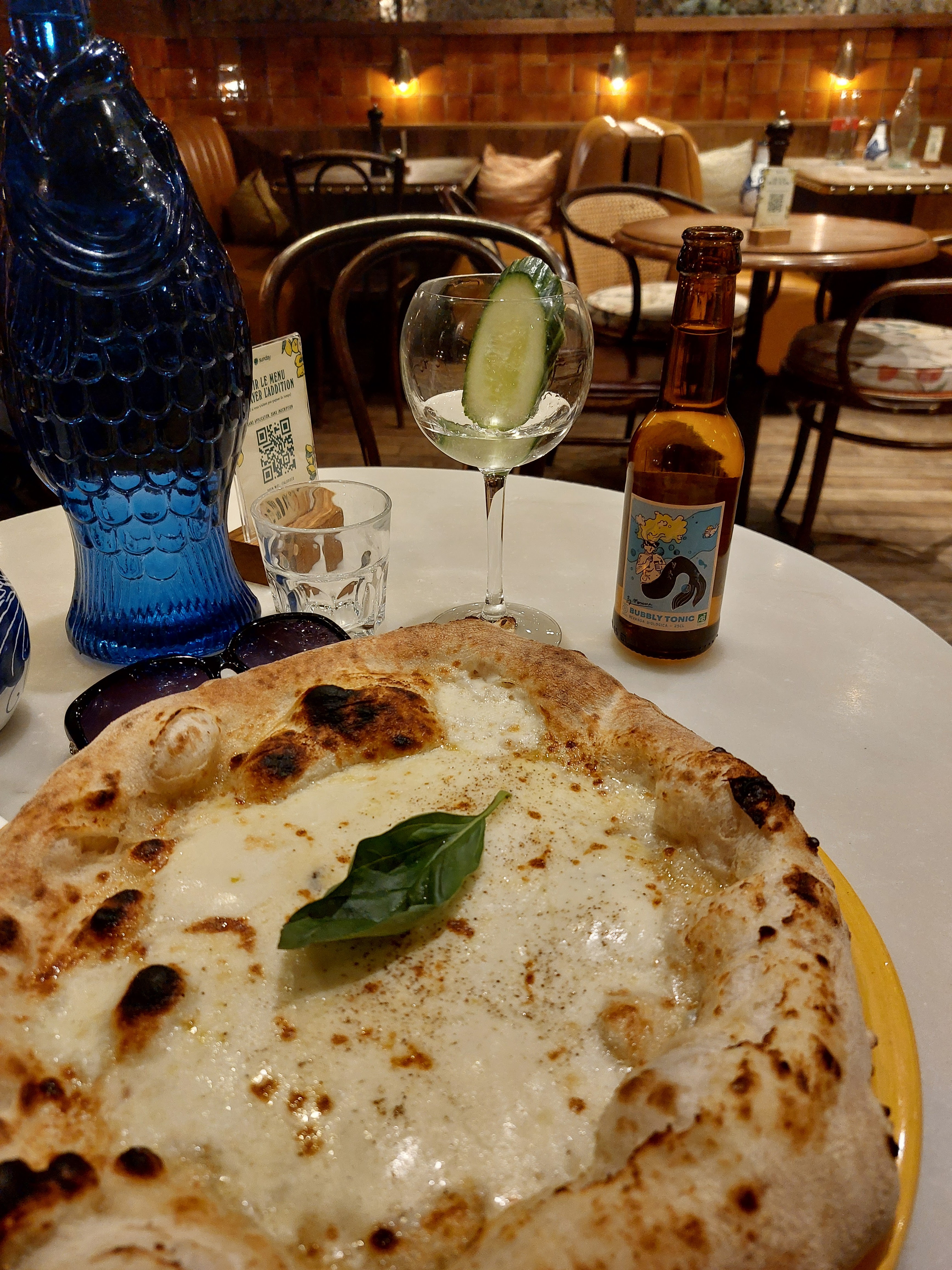 Quel endroit. Quelle belle pizza. J'ai adoré. Il y avait un dessert incroyable et du gin tonic. Je pense que c'était environ 38 €.