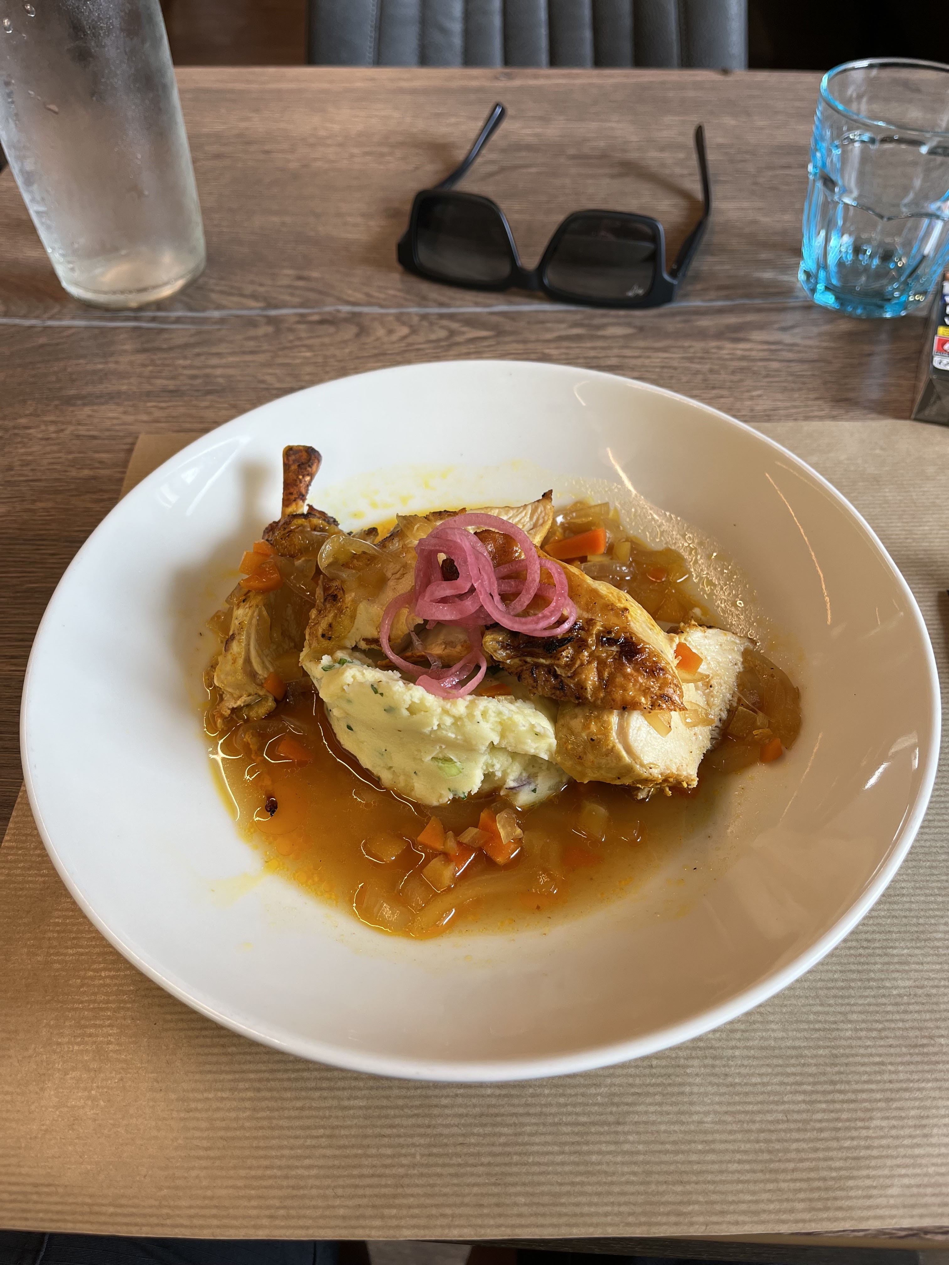 Première fois que nous mangeons là-bas, nous recommandons plat du jour ( 18€), rien à dire. Serveuse rapide.