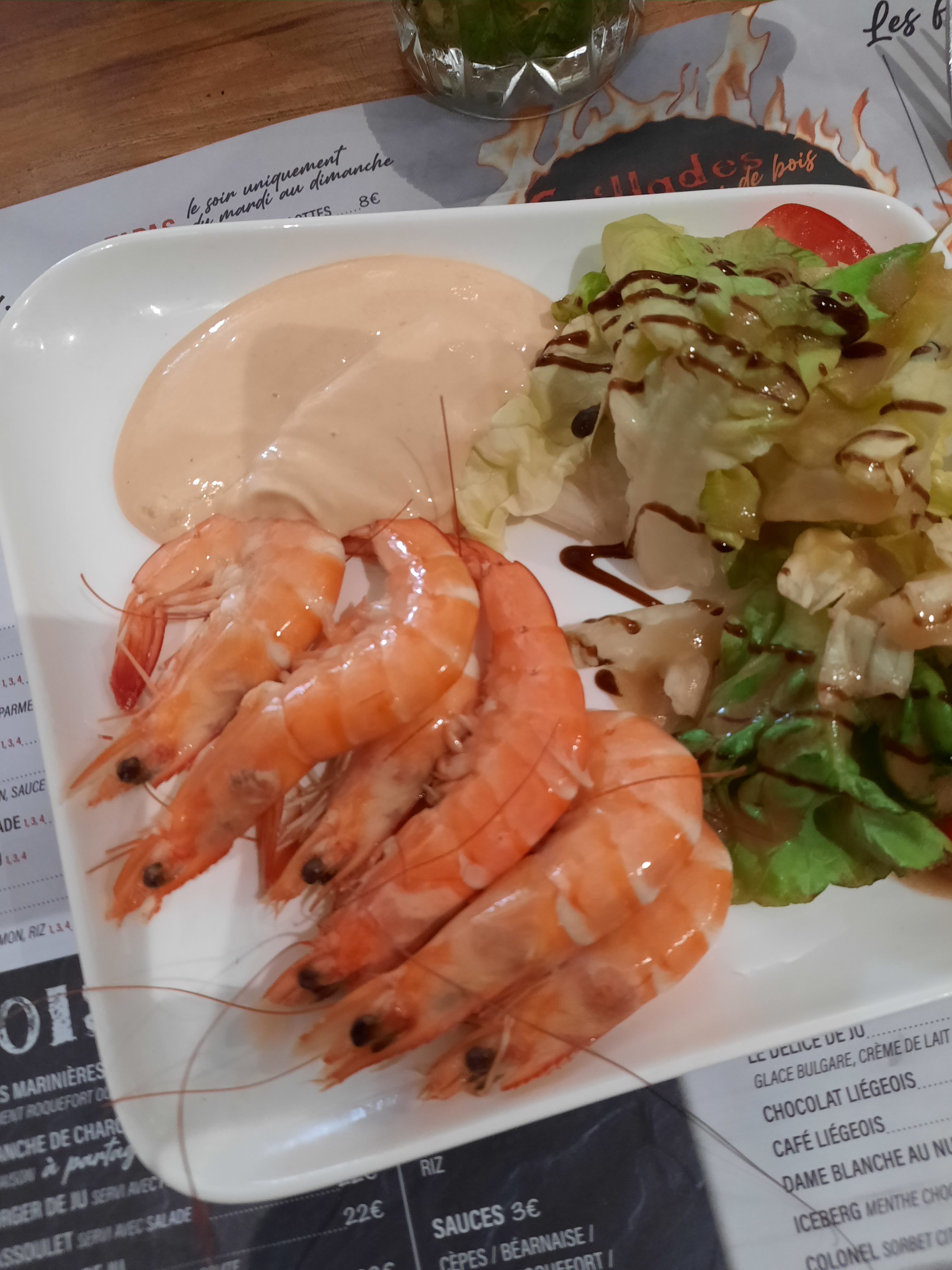 Les crevettes on gout d'amoniaque et l'entrecôte de 300g et fait pour un repas d'anorexique pour 26€!!! Par contre bonne ambiance!!