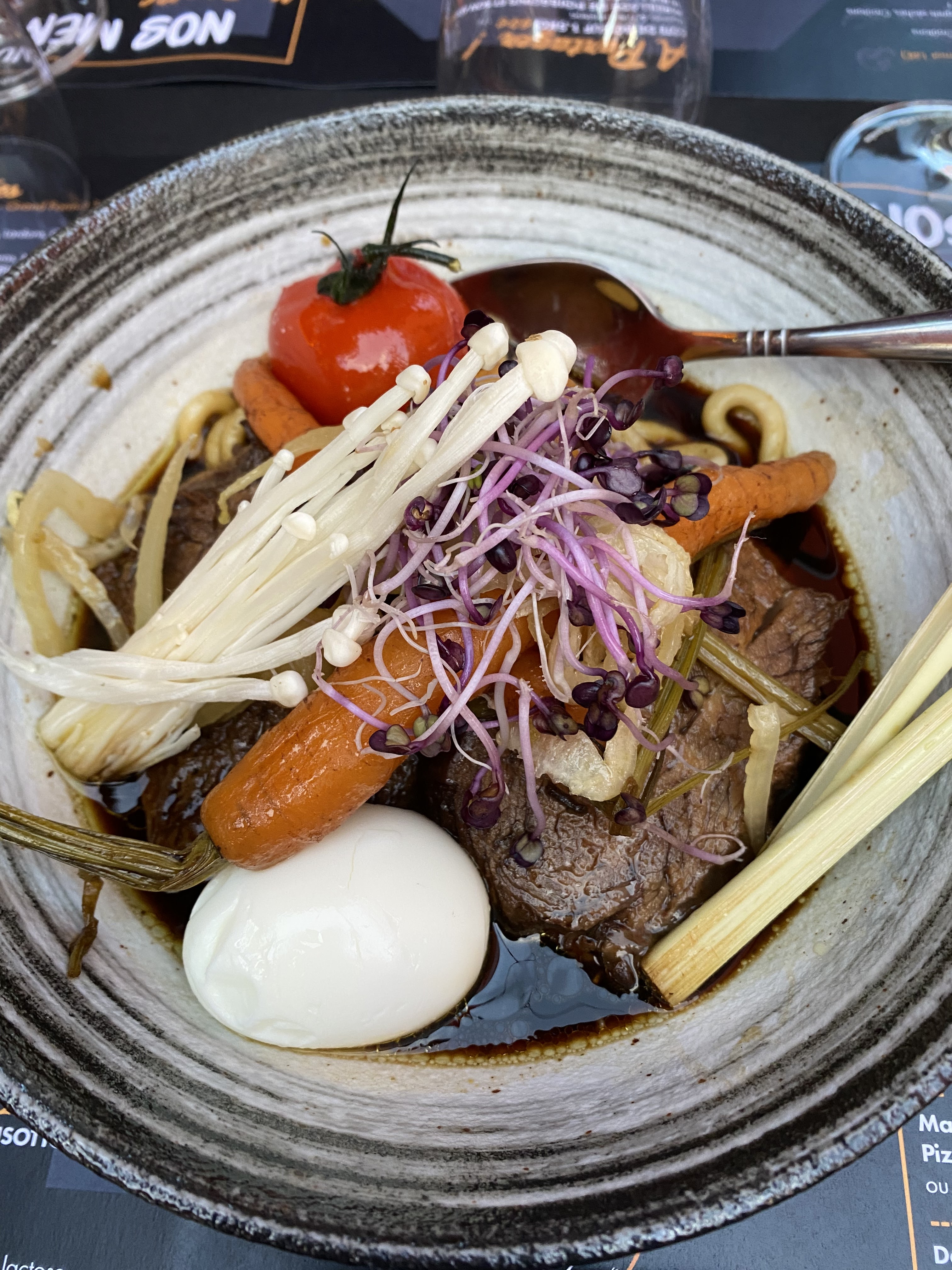 Vu ramen sur internet et non sur place! carte differente.... Seiche bien cuisiné accompagné frite/salade a la base, j'ai demandé sans frite car je n'en mange pas et pour éviter de gaspiller, j'ai eu les deux? ! Donc dommage... Un peu d'attente avant la prise de commande....