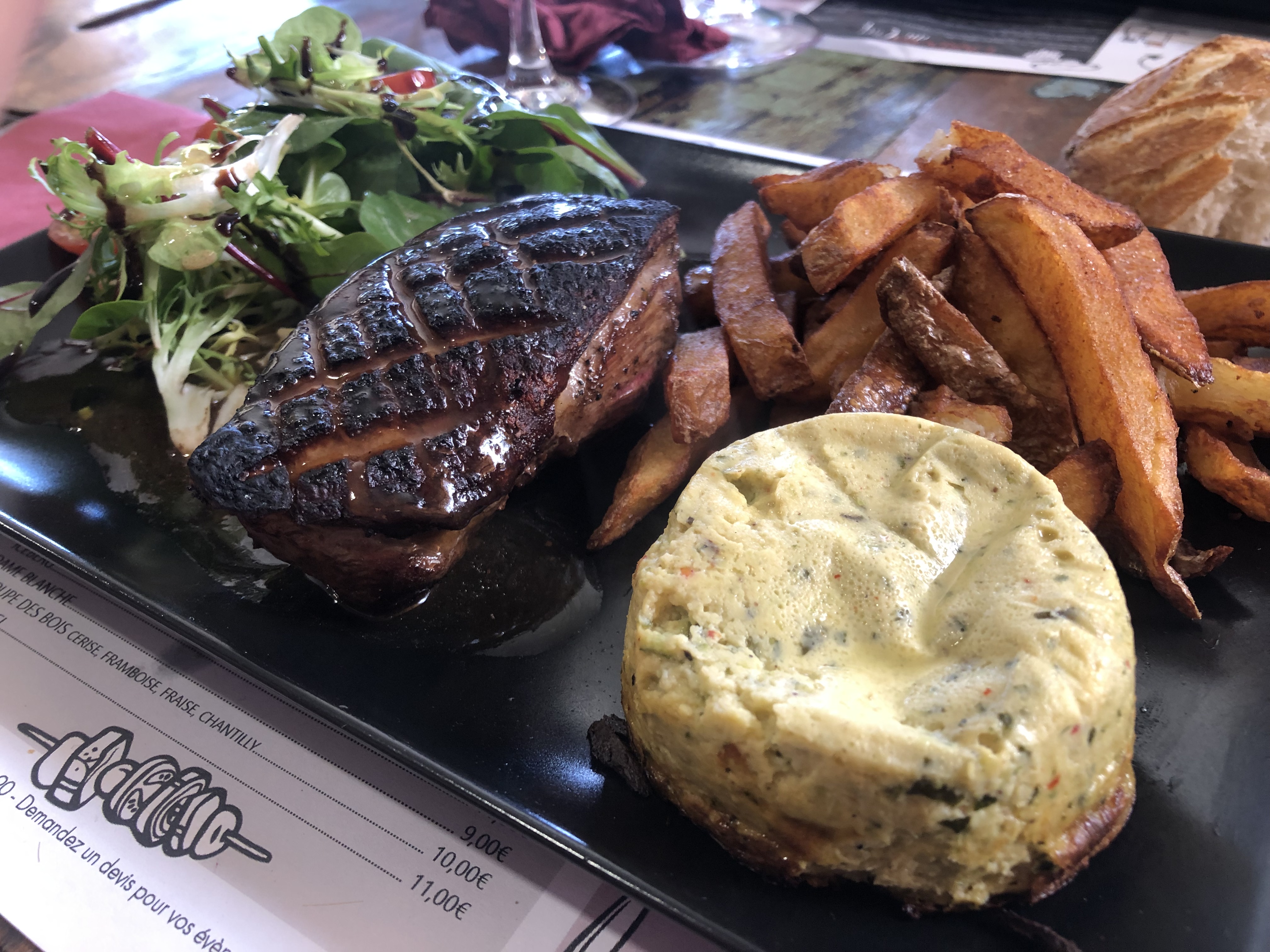 Endroit très sympa mais un peu cher. Entrecôte cuite au feu de bois très tendre. Seiche à la plancha très bonne. Frites maison. Un peu déçue par les prifiterolles qui n'avaient pas l'air d'être faites maison malgré un très beau visuel !