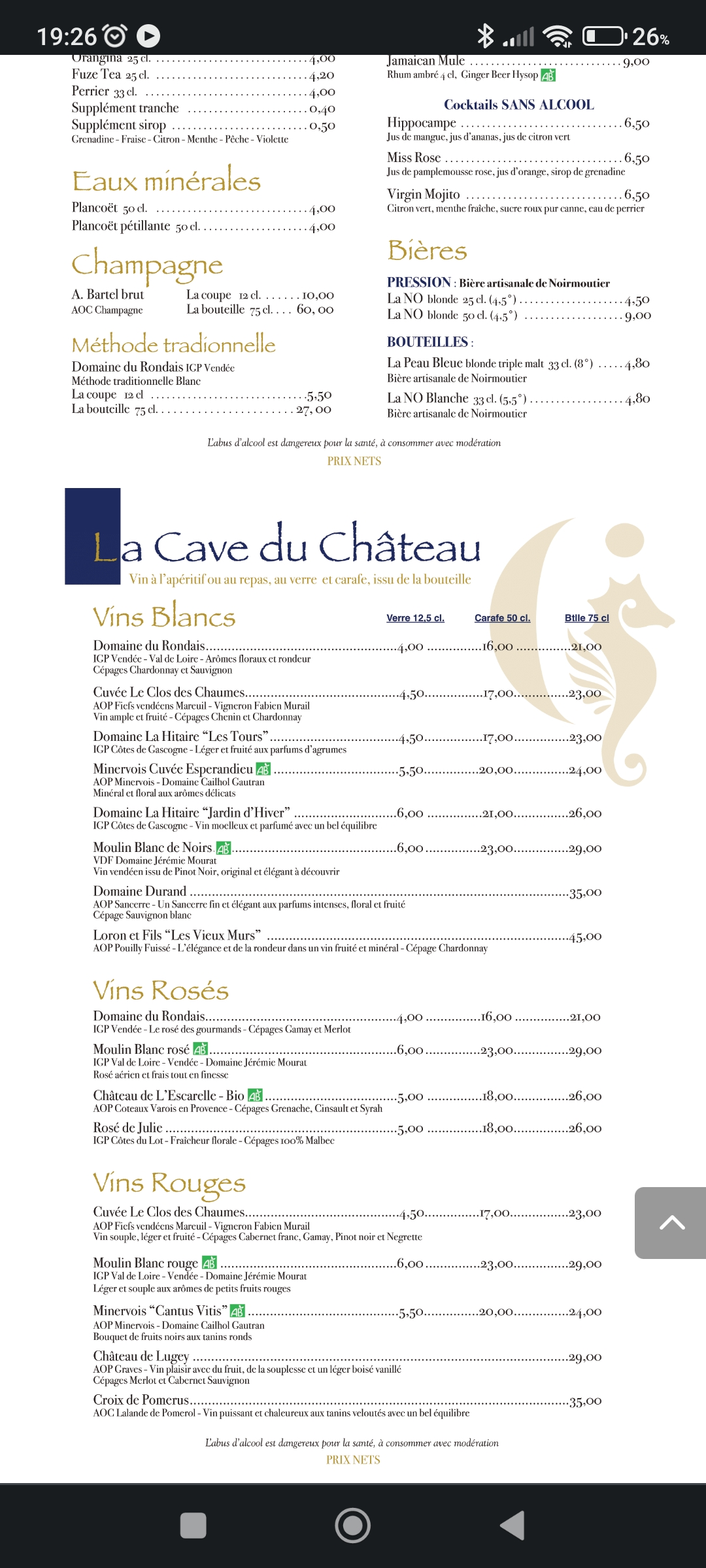 Habitués des crêperies, nous avons été déçus car très cher au regard de la qualité. Cadre sympa, service correct mais au vue du prix on s attend vraiment à mieux ! Galettes quelconques ni les plus mauvaises ni les meilleures mais de loin les plus chères…. Ce n est pas parce qu on est en vacances que l on doit se faire plumer…. Attrape touristes. On vient très souvent à Noirmoutier Dommage On a pas pris la peine de prendre un dessert….
