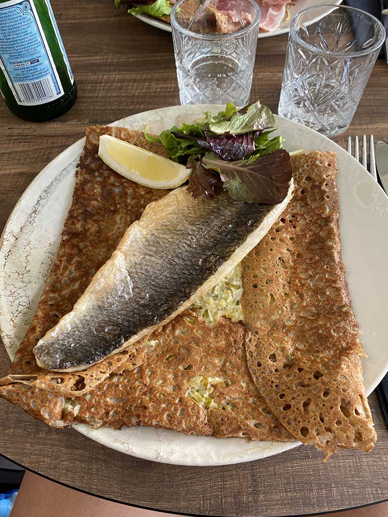 Nous avons pris des galettes sardines, salicornes, beurre de yuzu et pommes de terre de Noirmoutier. Rien à redire : le poisson est frais, les parfums délicieux, la cuisson parfaite. Le service est rapide. Le personnel sympathique. Une très bonne adresse.