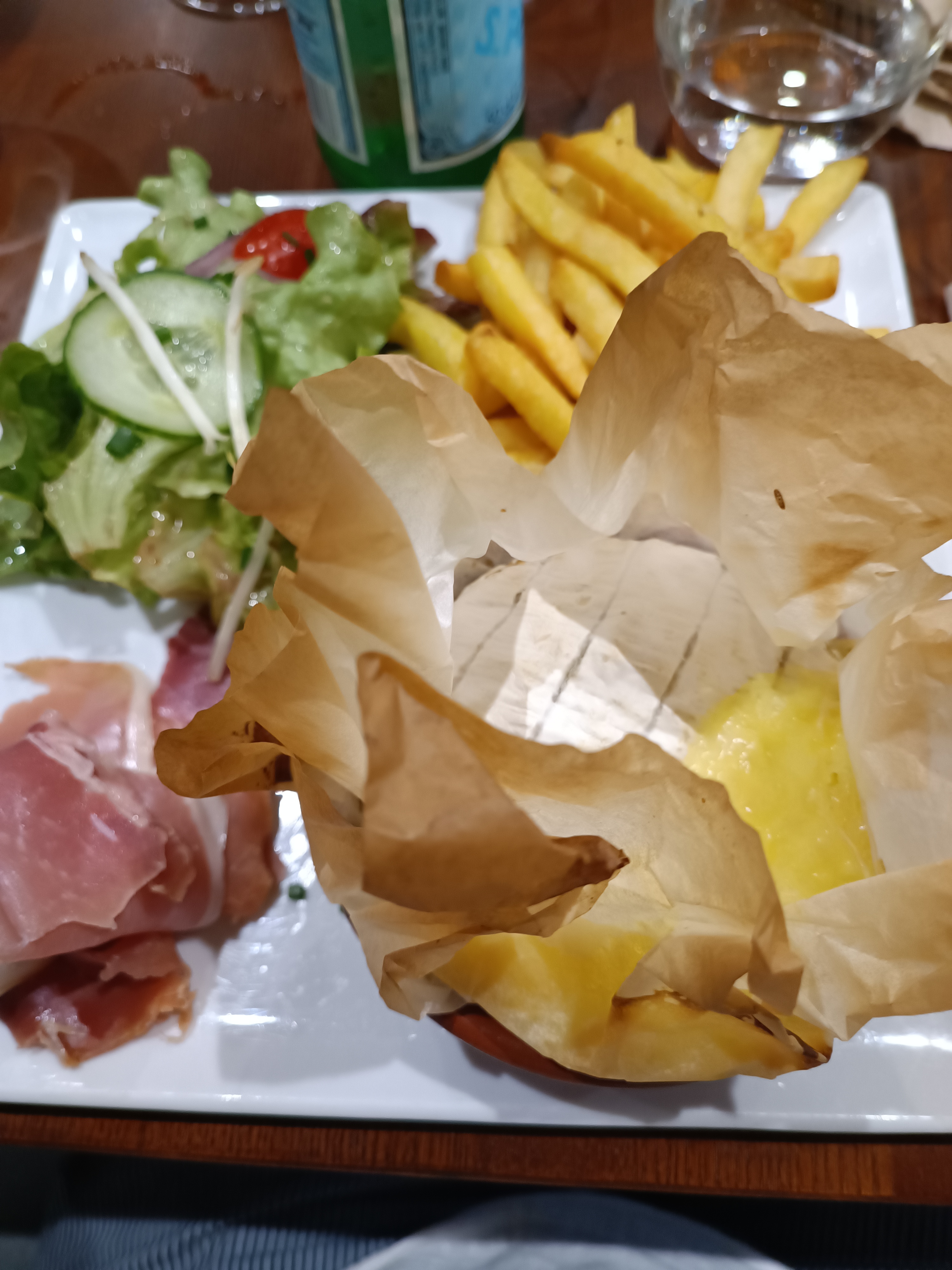 Commande tapas terrine bourguignonne avec l'Europe, reçu terrine chevreuil vin bourguignon. 12 escargots, 9 pour mon époux, 10 pour moi l'appellation correspondrait à cassette d'escargot. Viande charentaise à la cuisson bleue, auparavant je n'ai jamais mangé une viande très froide à l'intérieur, (est ce une viande congelée avant service ?). Commande 1 café, on en reçoit 2. La salade de chèvre, chevreau, le fromage n'était pas au top. Les problèmes ont été dits lors du paiement. Petit geste commercial, café et jus de fruit. Nous n'avons pas eu plaisir à manger.