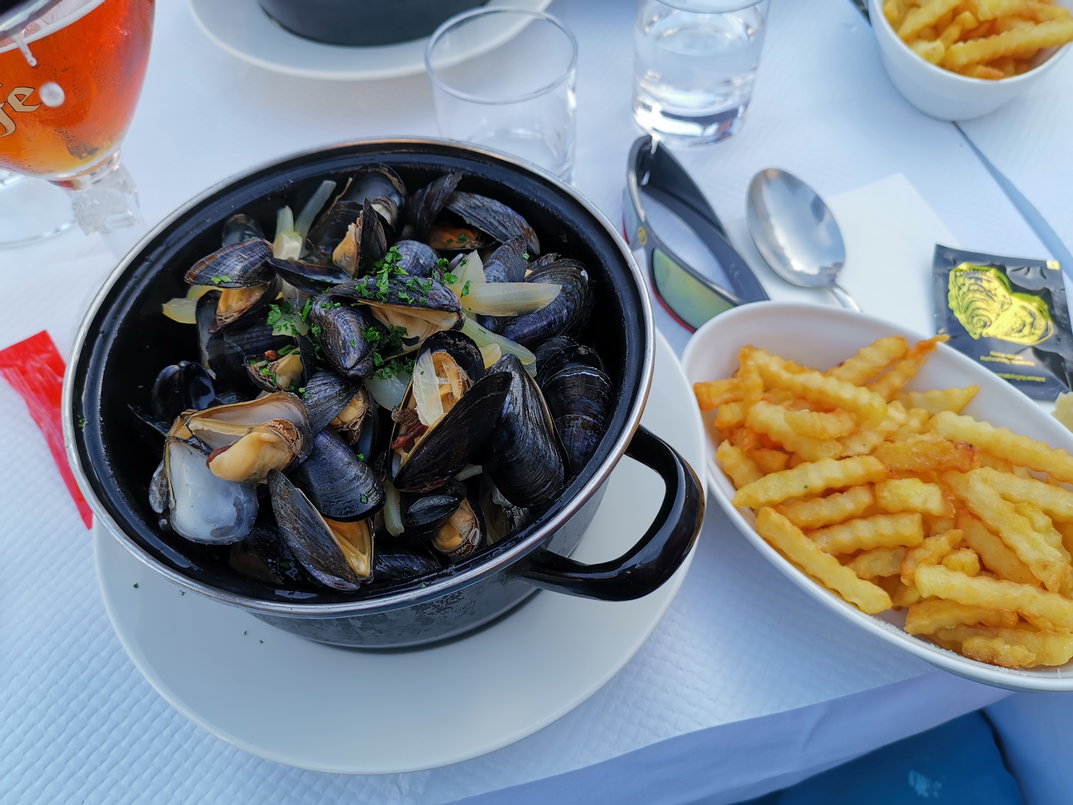 Tarifs corrects, frites excellentes, dommage mon mari a été malade toute la nuit avec les moules…