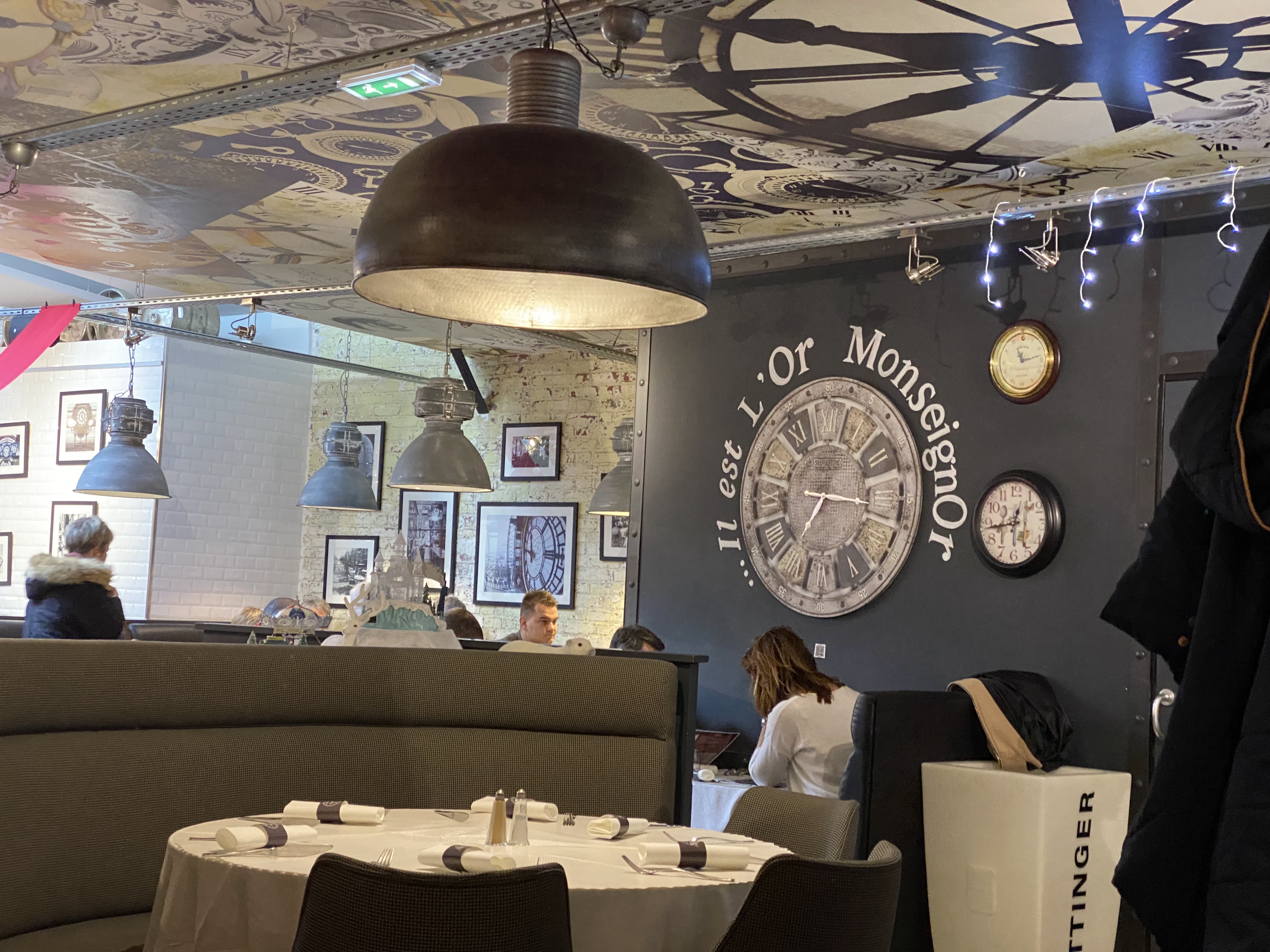 Restaurant proche de la cathédrale atypique avec sa décoration représentant bien sûr des horloges, le service est rapide, le personnel aimable et souriant, le menu est bon bien présenté, on passe un bon moment...
