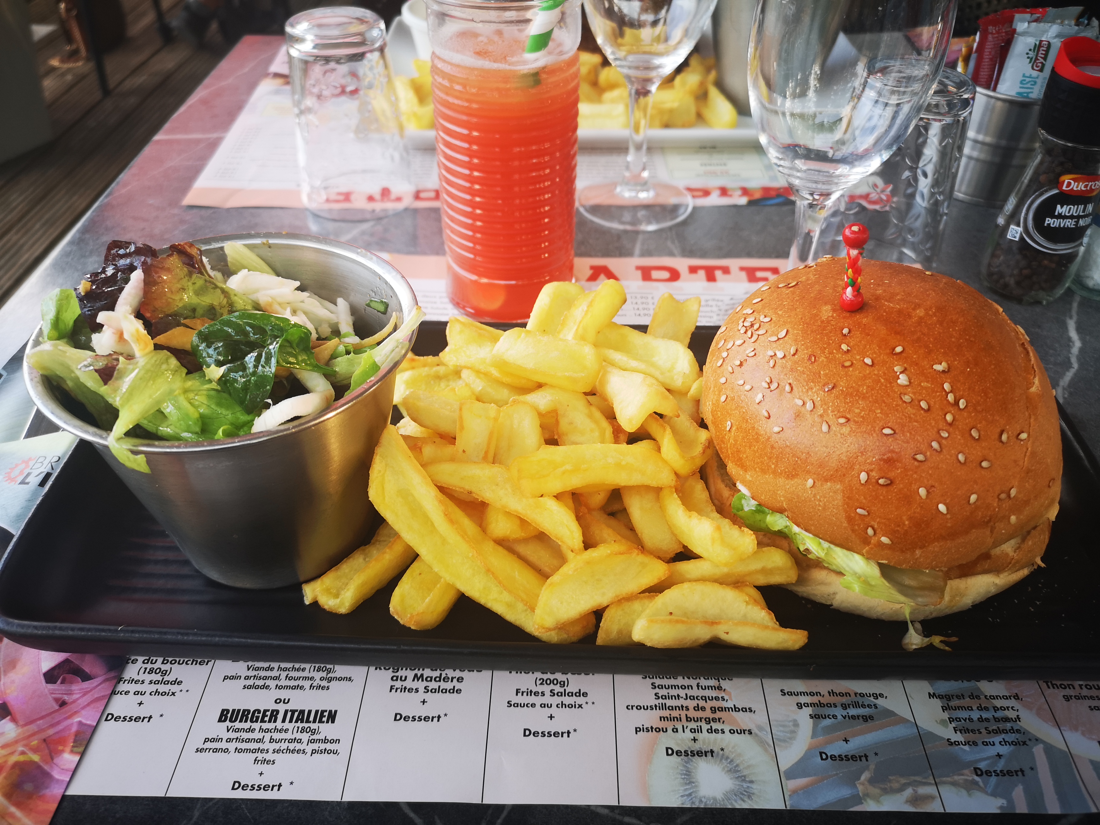 cadre et service agréable cependant j'ai pris un burger classique pour 14.90€ ce burger était uniquement servi avec des frites surgelés qui avait une texture et un gout en bouche très désagréable (gout d'huile prononcé) une salade aurait été la bienvenue dans cette assiette presque vide car de plus il n'y avait pas de sauce servie avec !.. c'était donc un plat beaucoup trop chère pour ce que c'était. déçus