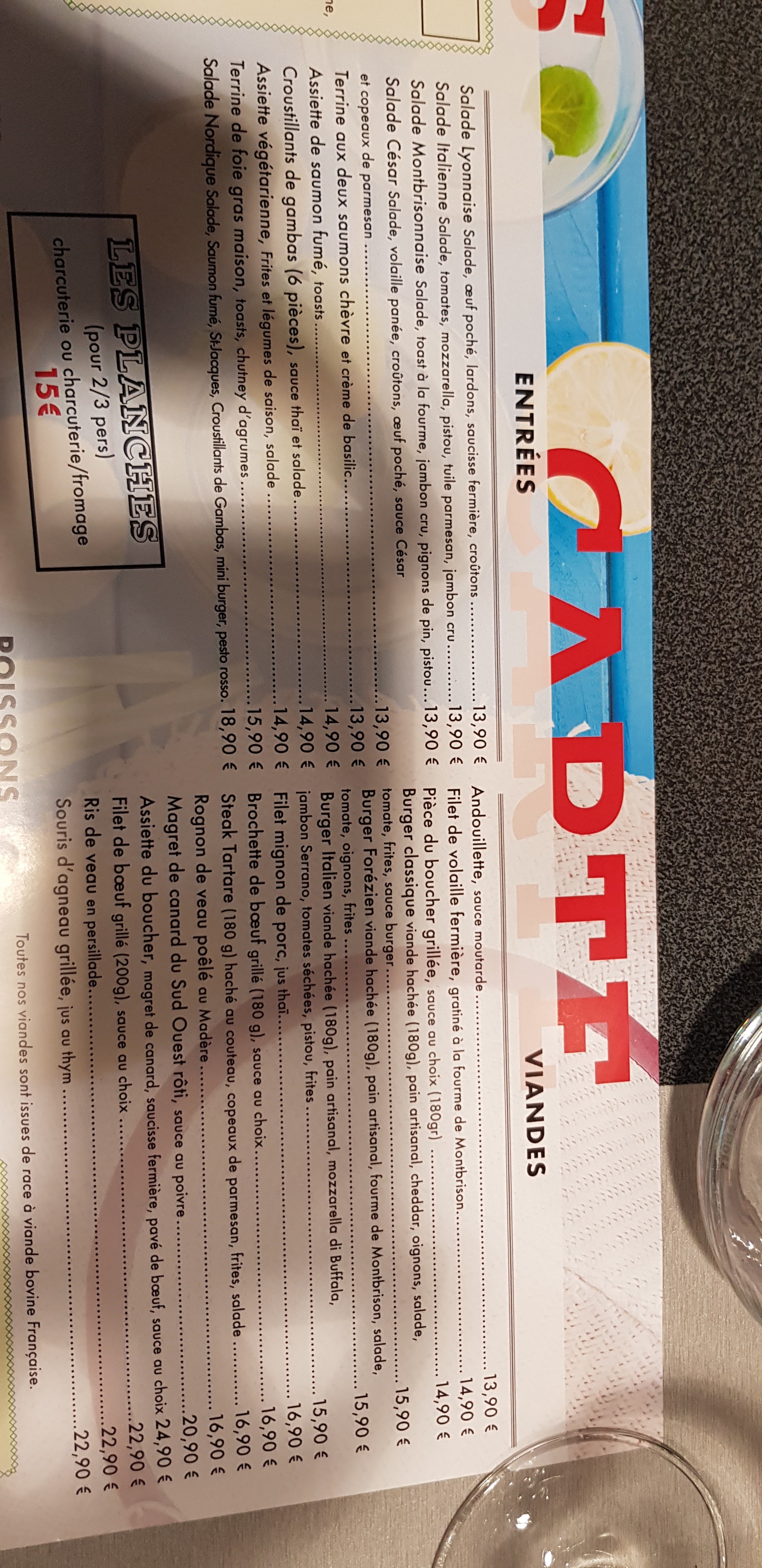 Menu et carte sympa... Plats bien cuisinés et copieux.. Salle un peu bruyante mais ambiance décontractée