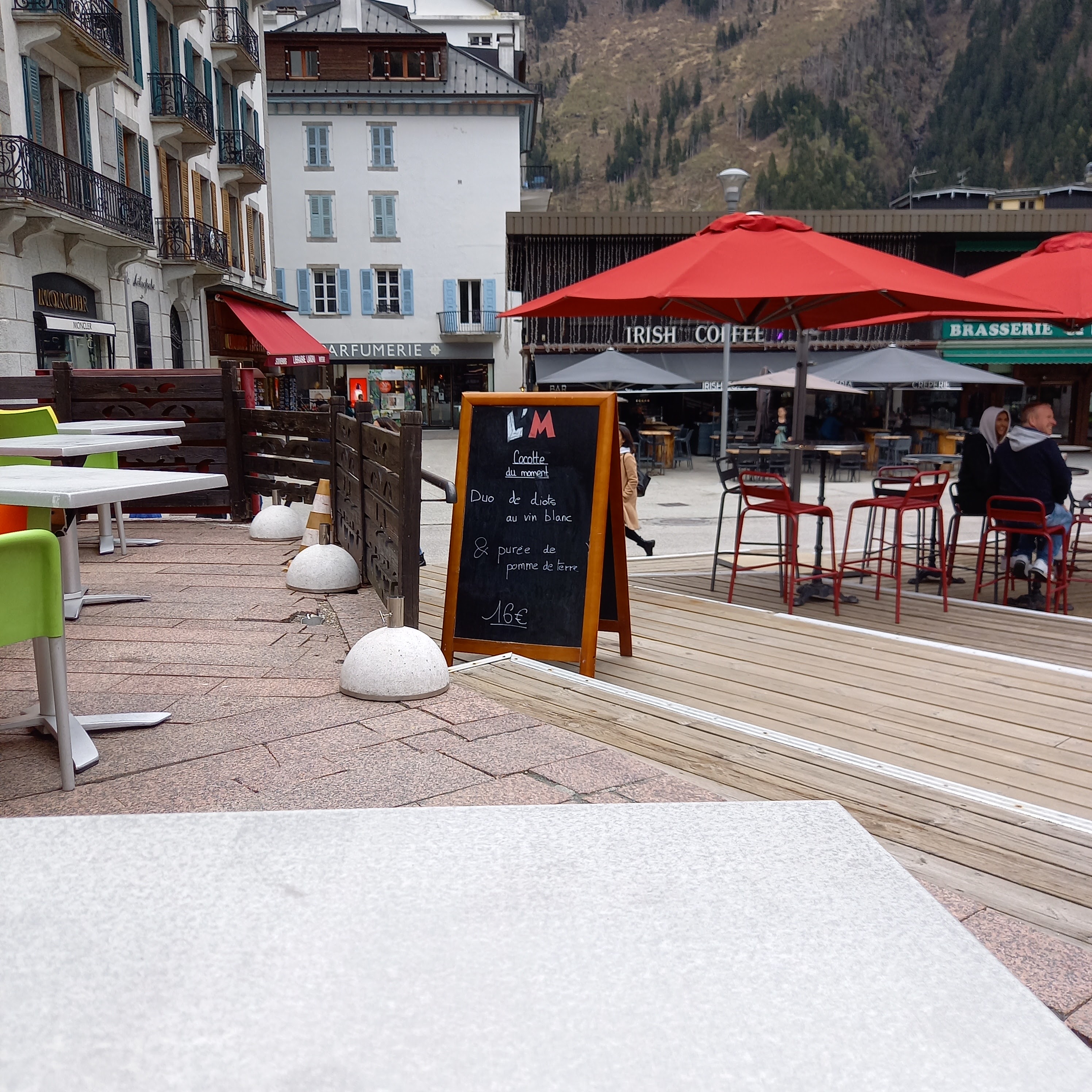 Très bonne table sur le centre de Chamonix , avec une vue imprenable sur le Mont Blanc , les serveurs y sont très très sympathique . je vous le recommande.