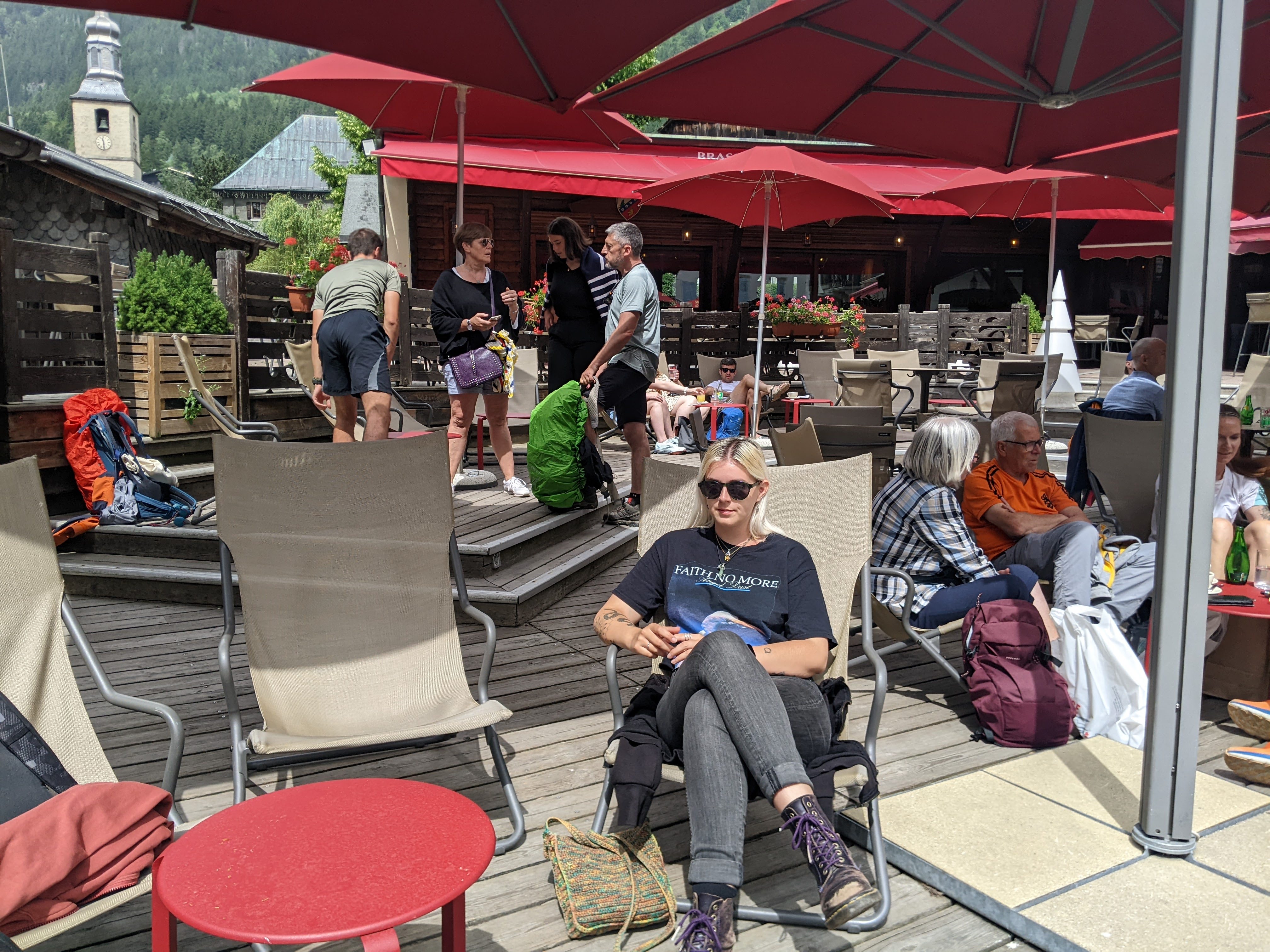 Endroit idéal pour prendre un verre ... face aux aiguilles de Chamonix. Le vin chaud pourrait être meilleur...par contre les cocktails sont bons. Des couvertures en hiver ... une ambiance internationale. Un chouette endroit en plein coeur de Chamonix. Les prix sont conformes à ceux de la station.