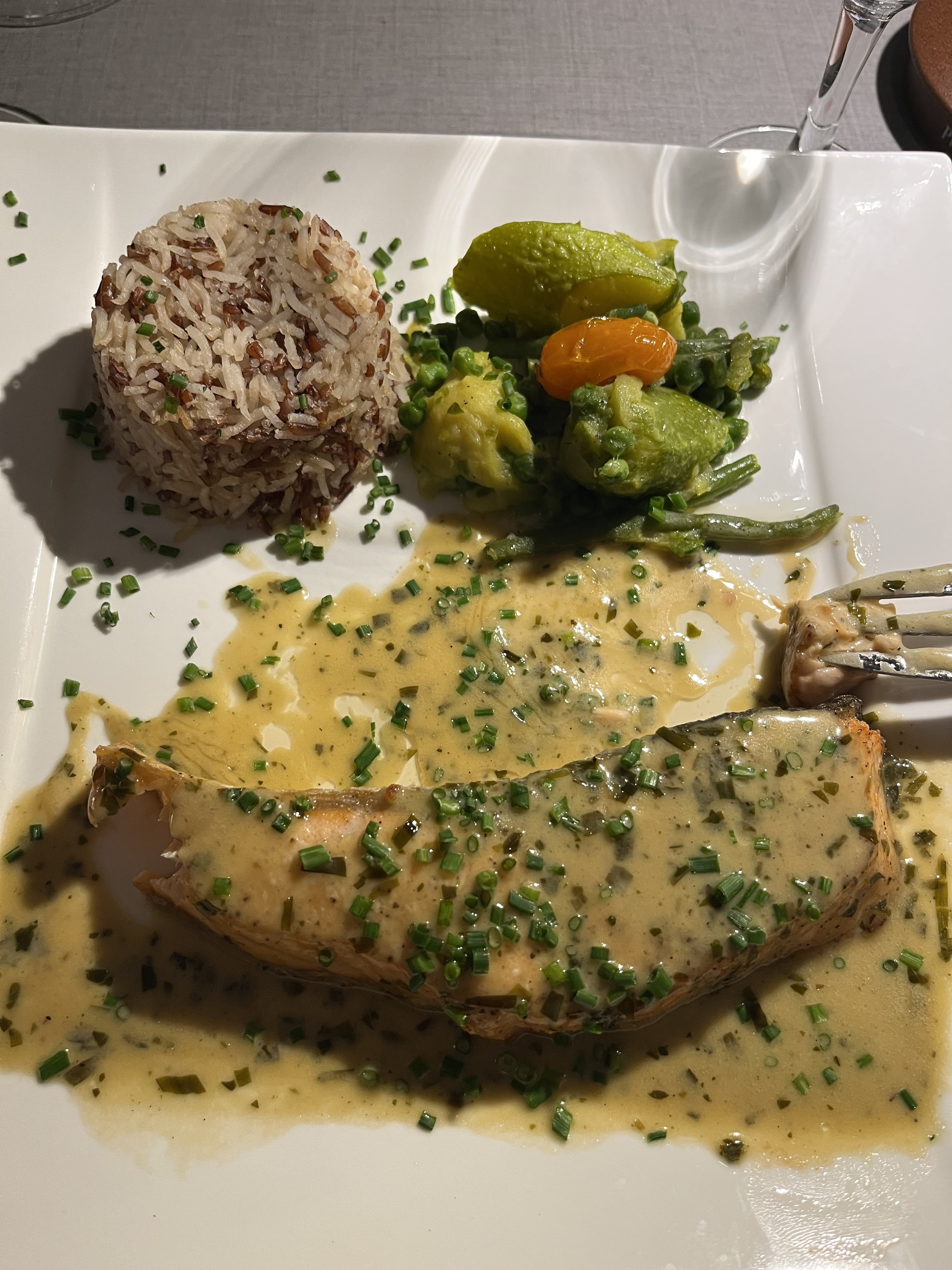 Poisson mal cuisiné service trop long heureusement que la serveuse a un bon humour