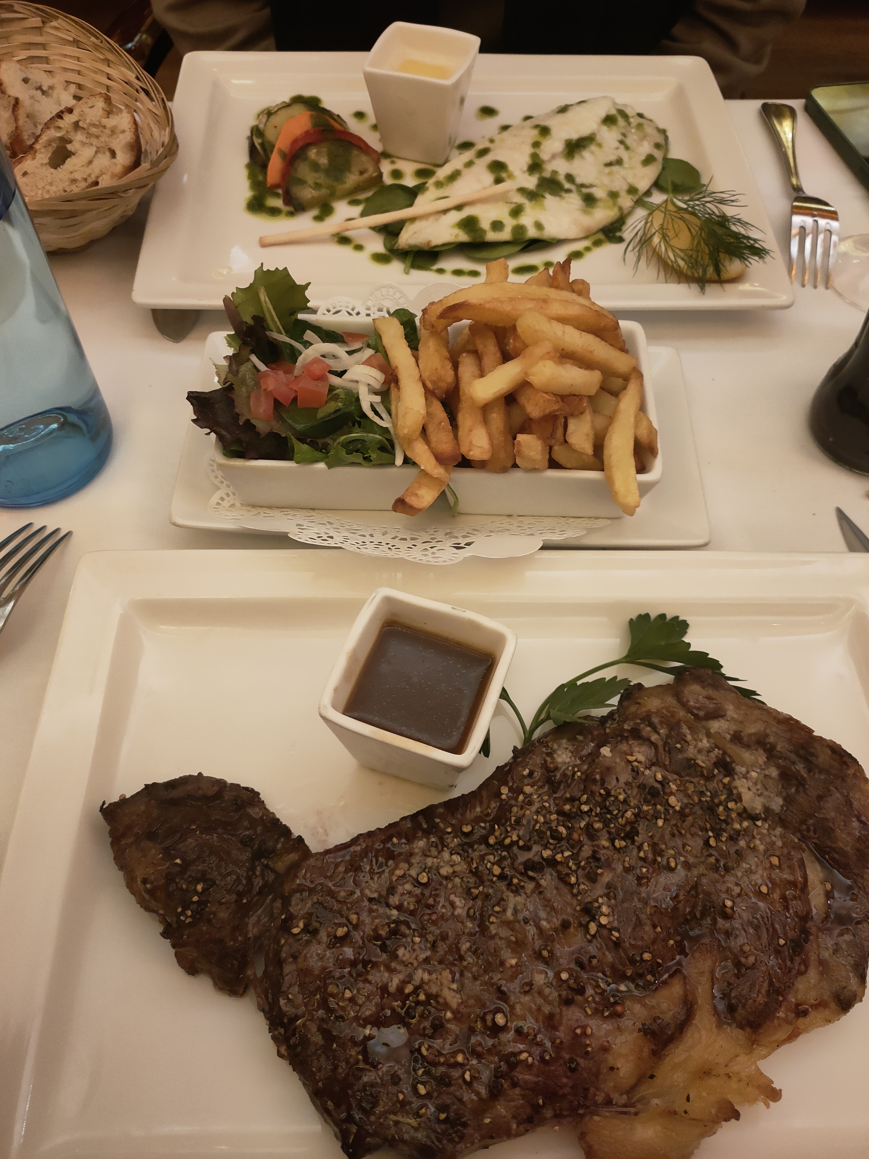 L’entrecôte est énorme 😂. Donc si vous avez un petit estomac prenez autre chose. Les portions des plats sont bien équilibrées et justes pour le prix. Le fondant est délicieux ! Personnel accueillant (en tout cas celui qui nous a servi).