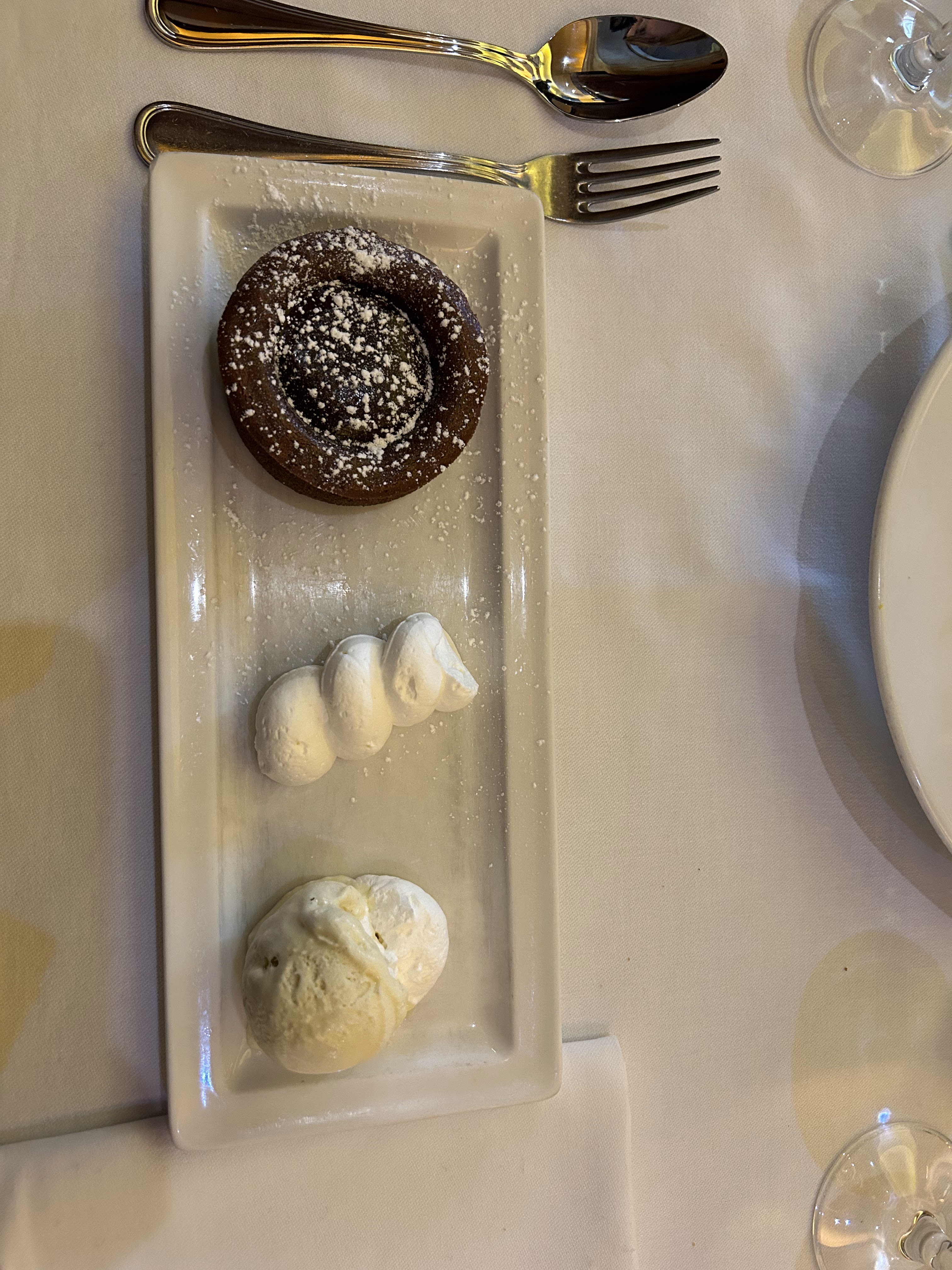 Le repas était excellent. Je recommande le risotto au maigre et le moelleux au chocolat. Mention très bien pour le service !