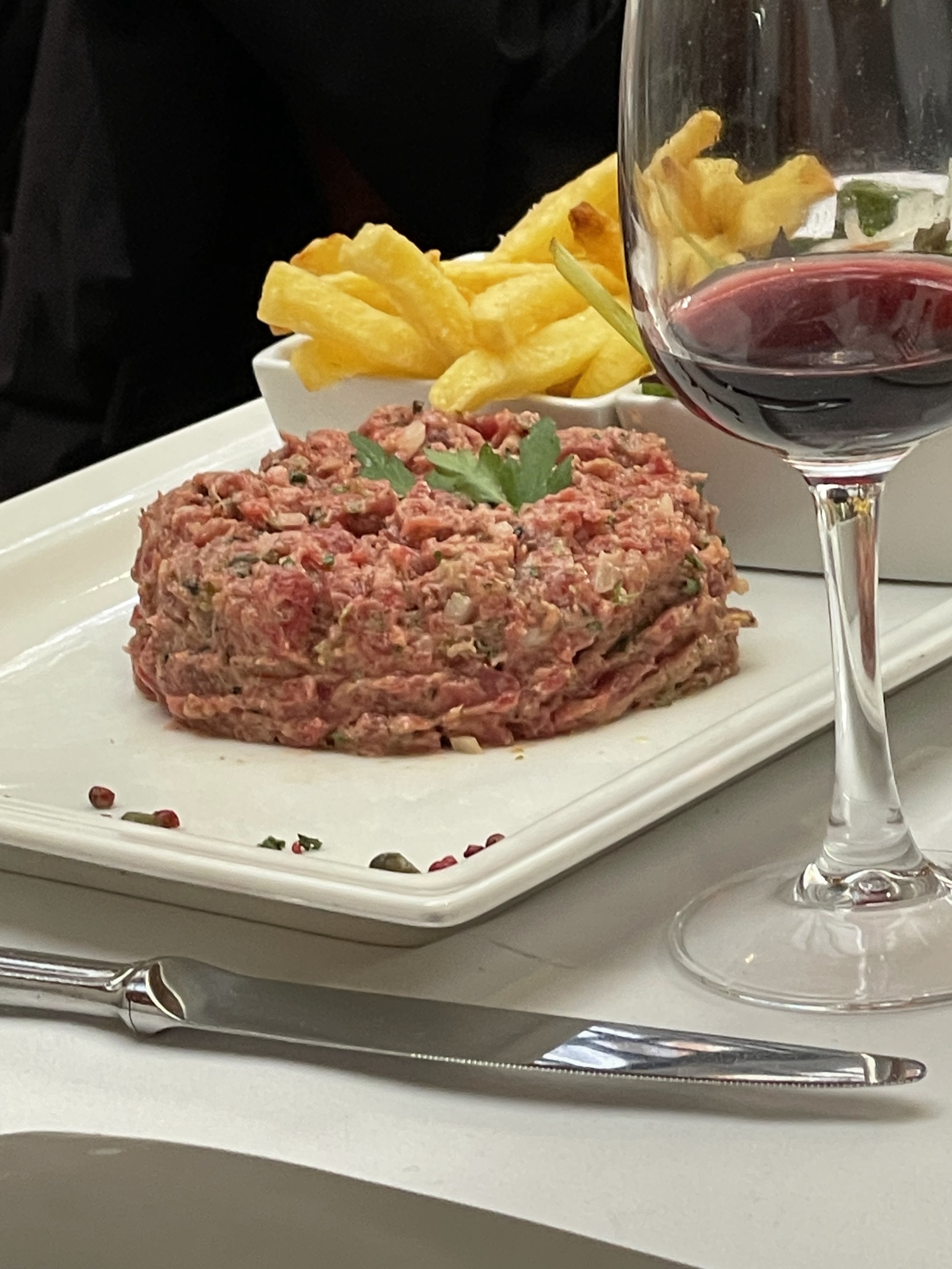 Bel établissement, rapport qualité / prix correct. Cependant, j'étais dans la cours intérieur (à ma demande) le serveur guère serviable :-/. Le tartare de boeuf excellent! Mais dommage que celui-ci soit préparer dos aux clients et uniquement en salle sur un guéridon bien déterminer :-/. Les frites maisons? On peut mieux faire! Le souffle au GD Marnier une tuerie pensez par contre à bien le commander au début! Sinon merci à Serge pour son professionnalisme qui a largement relevé le niveau du serveur initial c'est pourquoi, j'ai mis une étoile supplémentaire.