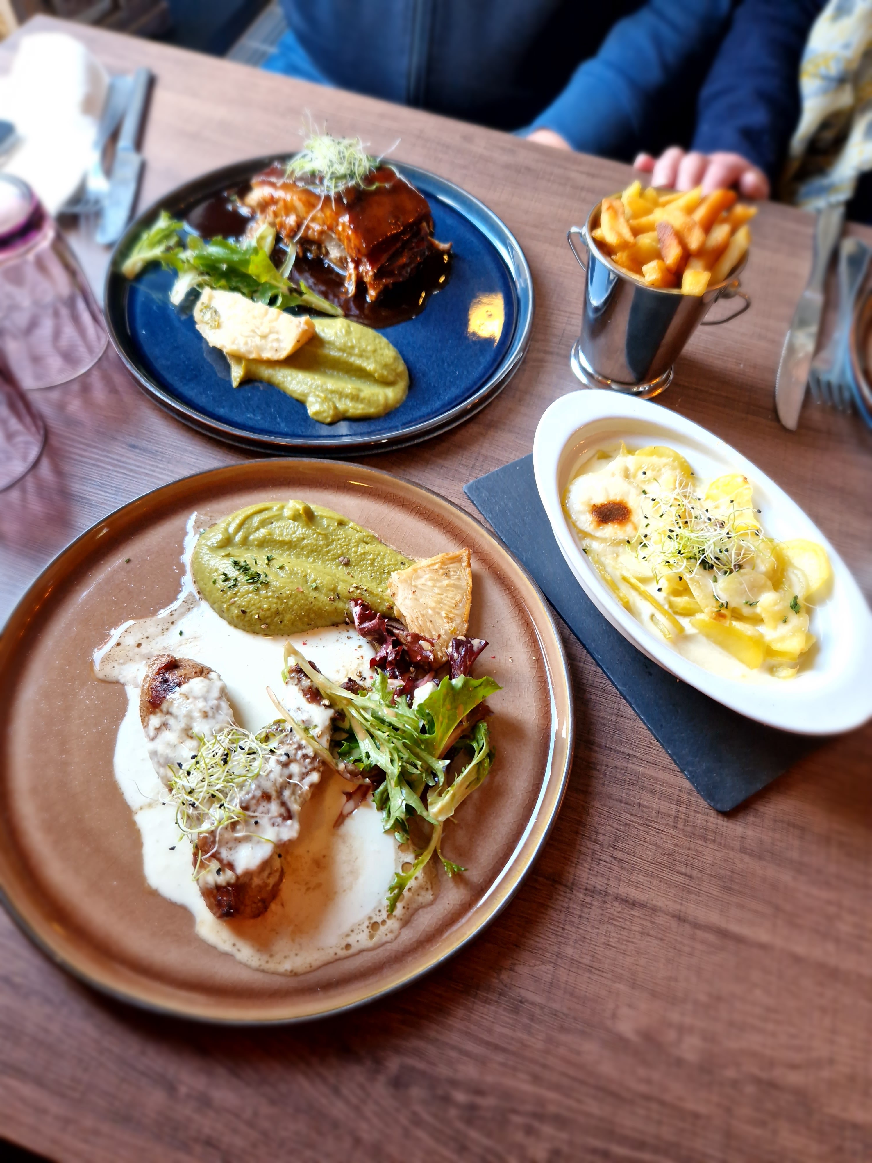 C'est vraiment une bonne adresse! Les assiettes sont joliment dressées, bien travaillées et savoureuses. Le personnel est accueillant et le restaurant en lui même est agréable. Nous avons pris en entrée une assiette de saumon et un toast chèvre chaud. En plat nous avons pris les travers de porc confits ainsi qu'un onglet de veau crème d'oignons, avec des frites et un gratin de pomme de terre au maroilles, c'était vraiment excellent! La mousse au chocolat en dessert était réconfortante et légère. L'addition finale est tout à fait correcte. Nous recommandons cette adresse!