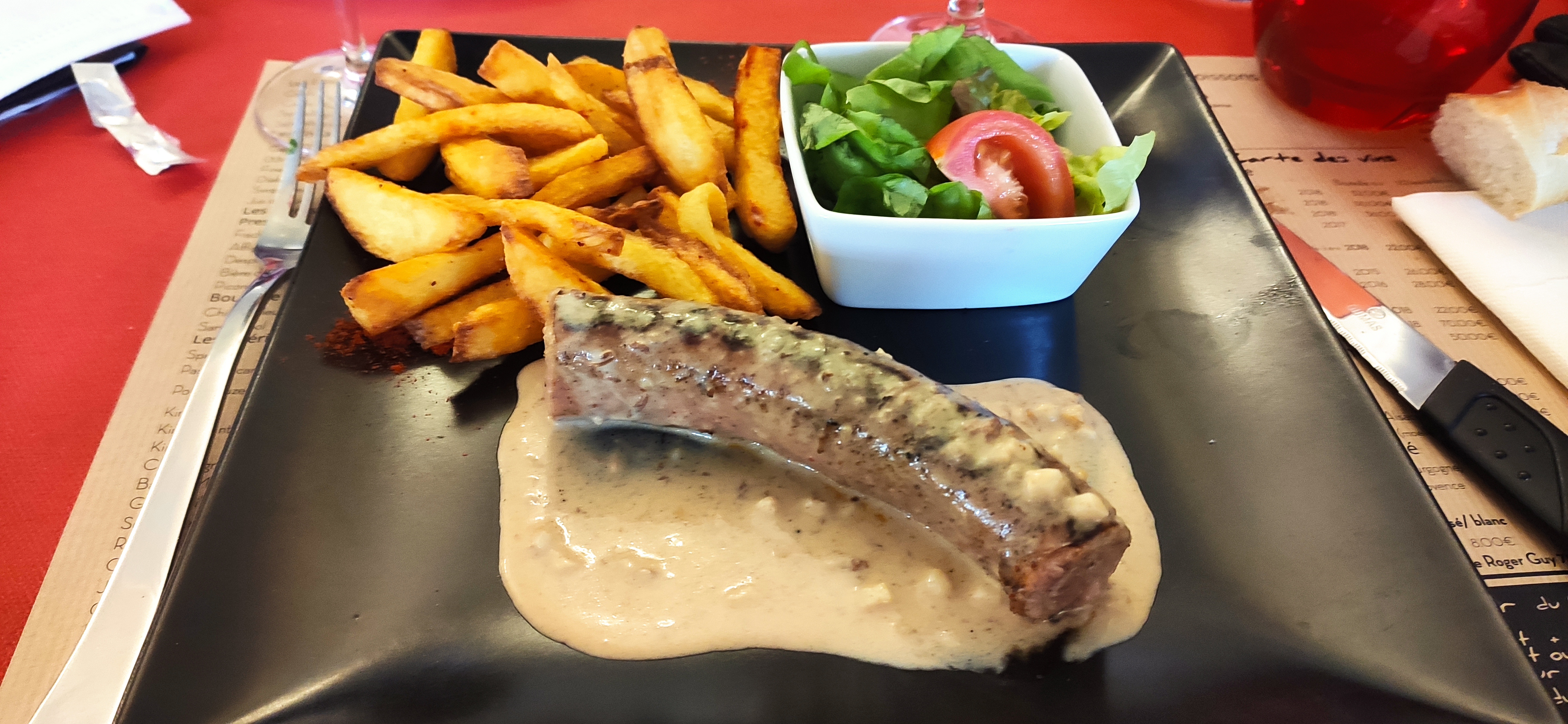 Formule du jour a 13,90 € déçu par la consistance du repas! Émincé de boeuf + frites un peu maigre. Crepe choco + chantilly! Service et cadre correct.