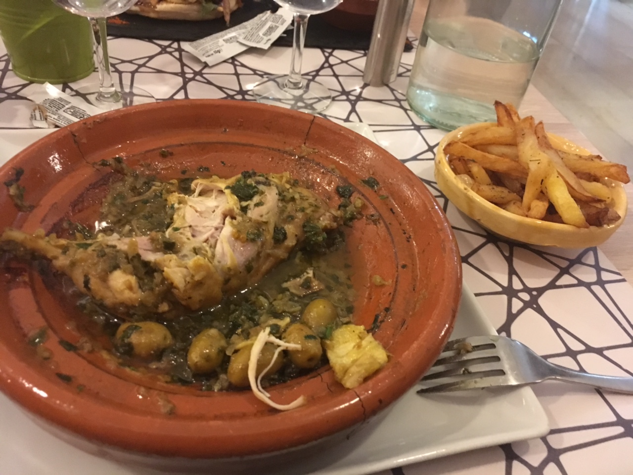 Bien que cet établissement ait reçu la visite du chef Etchebest (sur laquelle elle « surf » toujours, il n’en demeure pas moins que ce restaurant ne respecte pas ce qu’il promet, une cuisine généreuse et faite avec amour: accueil moyen (le serveur ne savait pas ou nous placer,alors que le restaurant était vide,prétextant une grande table qui allait arriver (6personnes!!)), plat peu copieux avec une recette revisité visiblement (cf photo- un Tagine ne se limite pas à une cuisse de poulet + olives, le tout baignant dans l’huile),du riz oublié mais ...proposé lors du dessert pour se faire pardonner par la patronne, une absence de sauce avec une entrecôte commandée (jamais vu non plus dans un restaurant que la sauce d une viande était en supplément). Dans ces conditions, étant resté sur notre fin/faim, évidemment pas de dessert de commandé... En définitive, pour un restaurant s appelant la brasserie de Lyon située à Marseille proposant de la cuisine marocaine mais sans couscous un samedi soir à 20h30, il faut le faire .... mais la patronne a toujours une bonne explication à tout cela et vous offrira un thé pour se faire pardonner ... À bon entendeur 😉