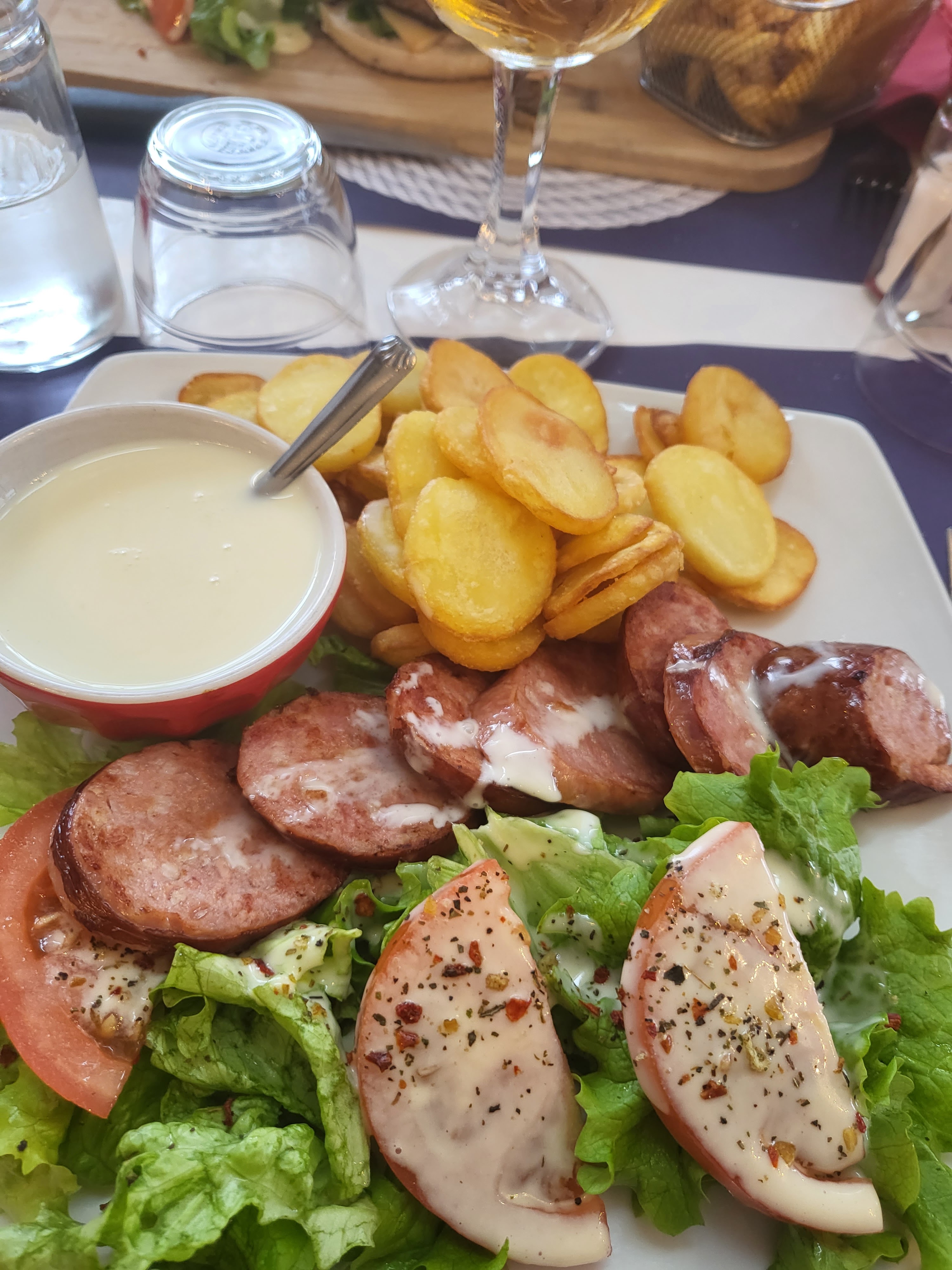 Bien situé au bord de la Saône, un peu agité, les tables ne sont pas débarrassées. Le rapport qualité/prix du menu du déjeuner était bon.