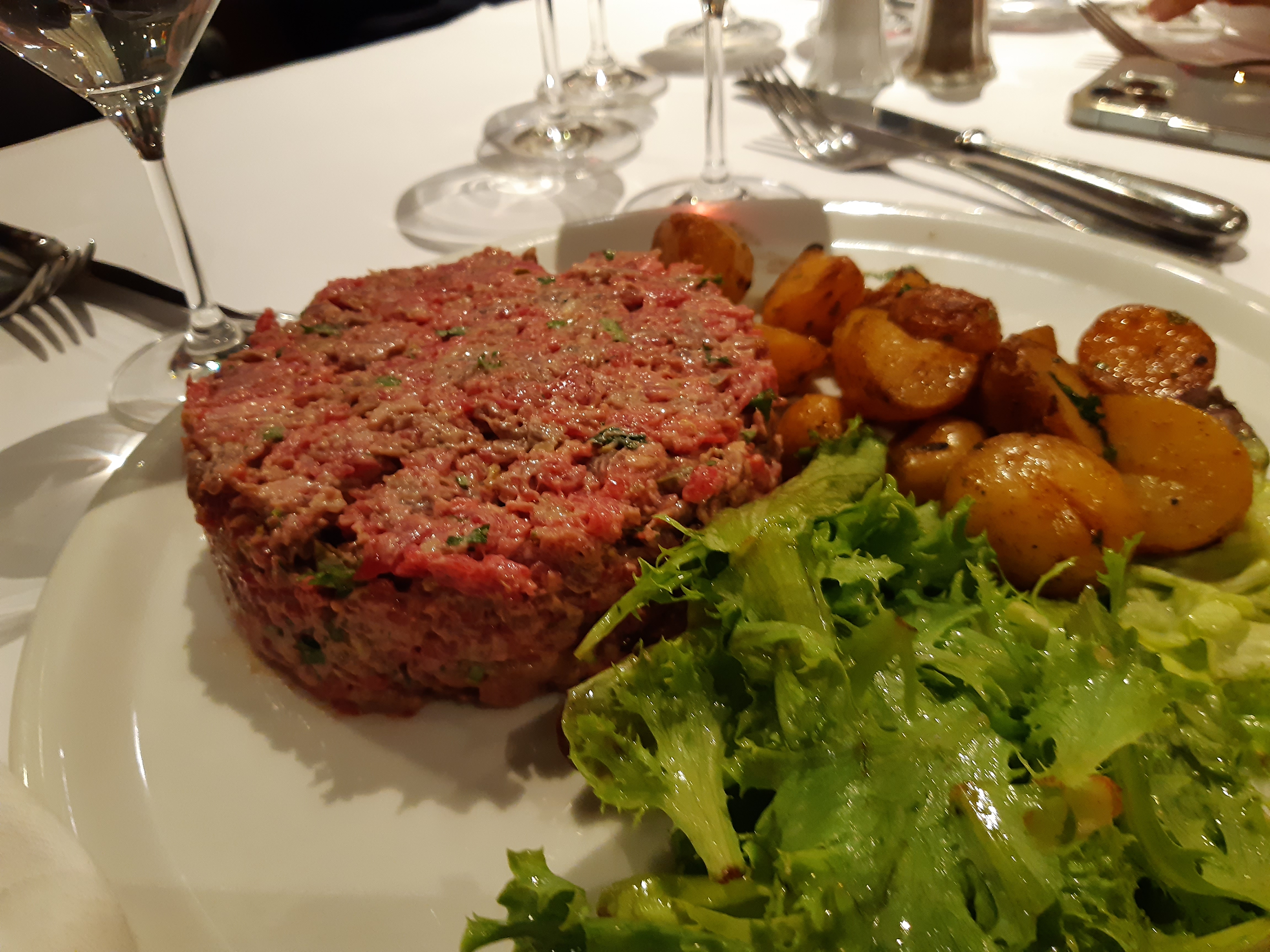 Manque de cuisson du poulet, accompagnement froid. Heureusement très bon tartare accompagné de bonnes pommes de terre, café gourmand vraiment gourmand dommage pour la quantité Service agréable
