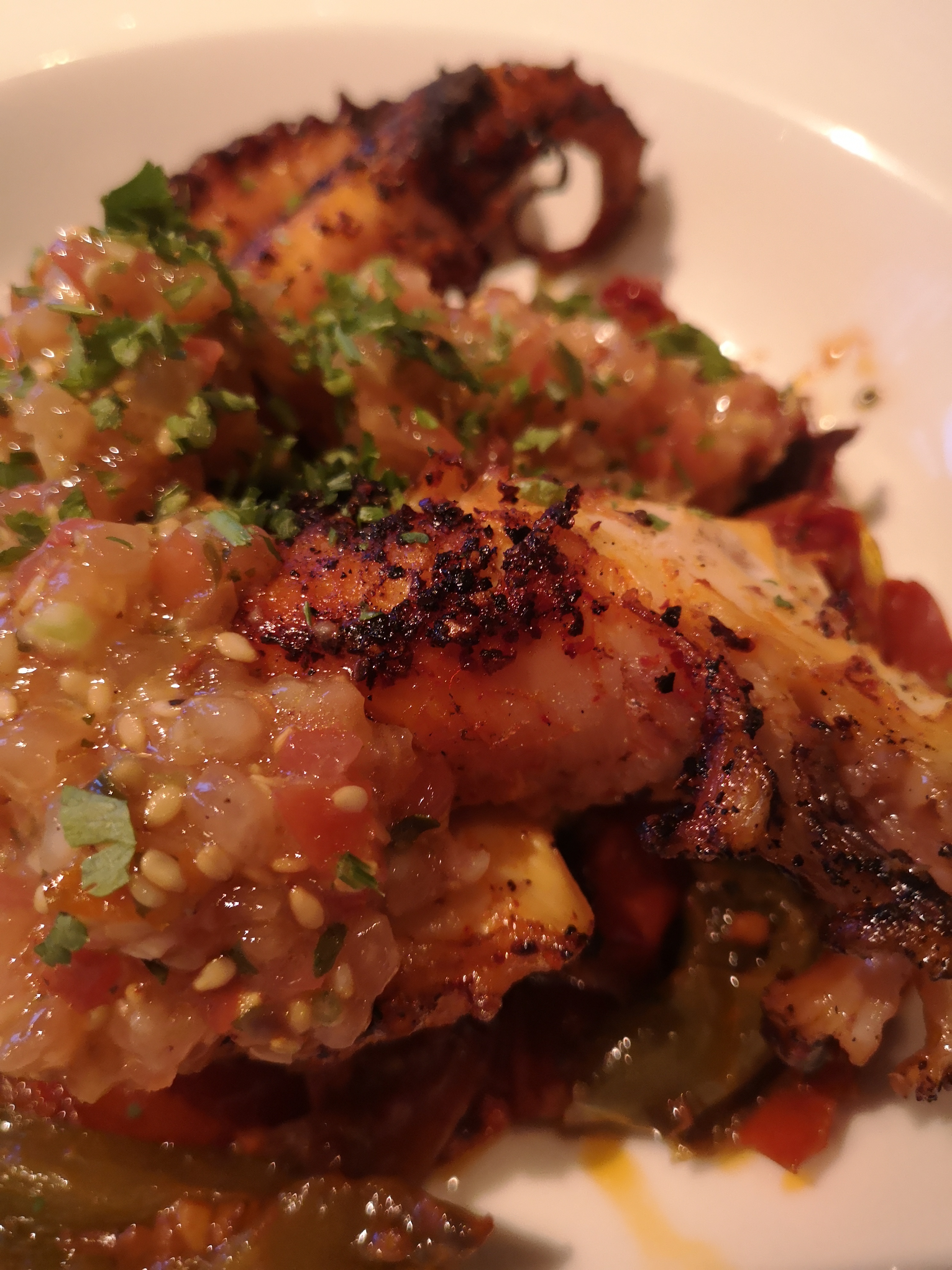 Foie gras excellent et bien servi, saint Jacques fondantes et purée de panais parfaite, poulpe rôti pas caoutchouteux et très bien cuit, vin blanc Jurançon délicieux, c'aurait été parfait si le cocktail sans alcool n'avait pas été insipide et les oeufs en neige beaucoup trop fermes ! Donc nous reviendrons mais sans prendre d'apéritifs ( il manque d'ailleurs une mise en bouche à la place des olives vertes ) ni de desserts