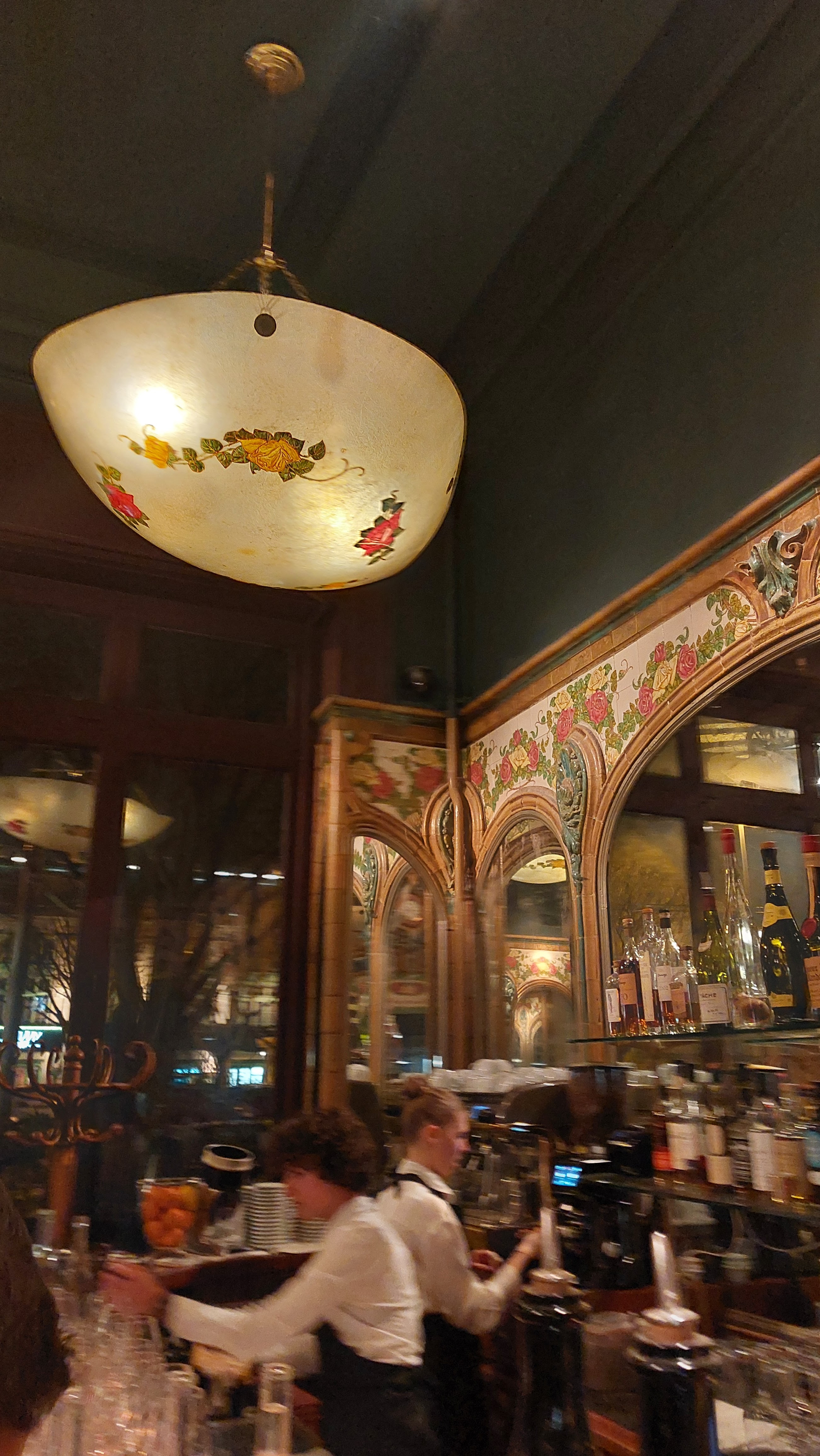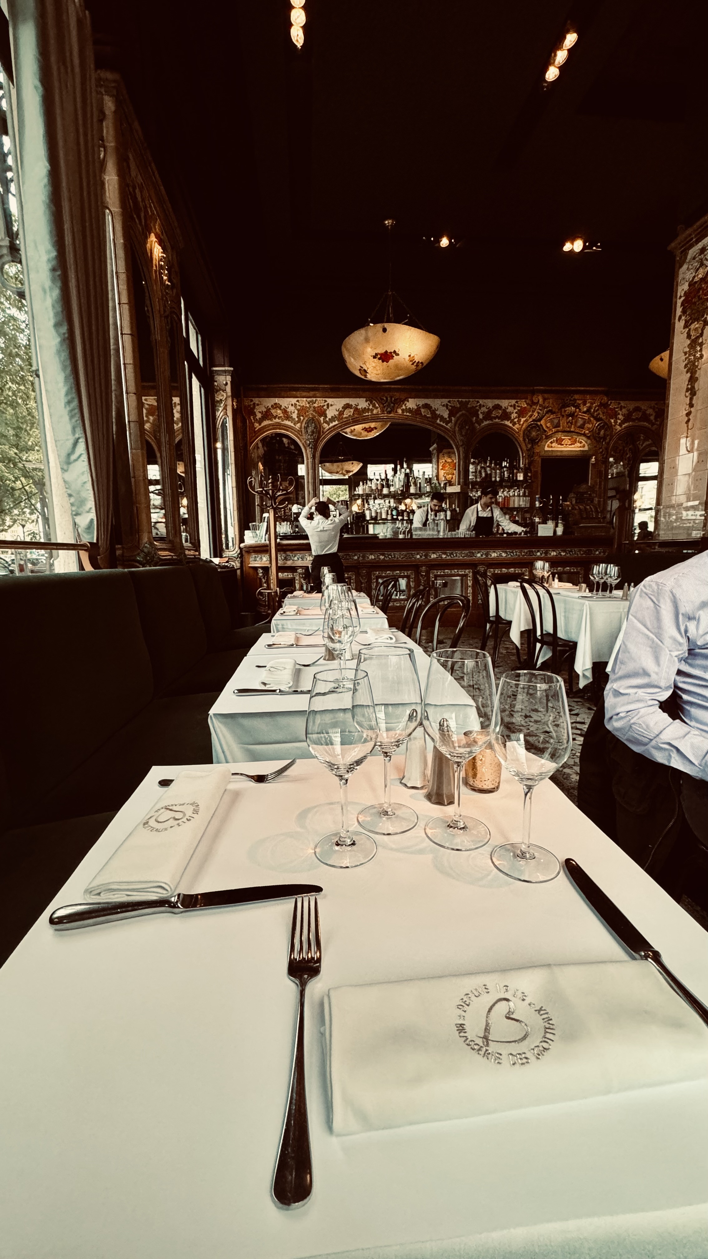 Cadre magnifique, charme du décor, céramiques et lampadaires superbes. Menu simple, repas très bon, excellent rapport qualité/prix (menu complet à 42€) et copieux, avec beaucoup de légumes, de l'entrée au dessert. La carte des vins et alcools est impressionnante ! Le vin a été très apprécié, choisi grâce au sommelier qui a été très professionnel, comparant plusieurs vins, de très bon conseil. Le personnel, nombreux, jovial, souriant, était aux petits soins. Nous sommes restés très longtemps bien après tous les autres clients tant nous étions bien. Je connaissais déjà la brasserie et j'y retournerai.