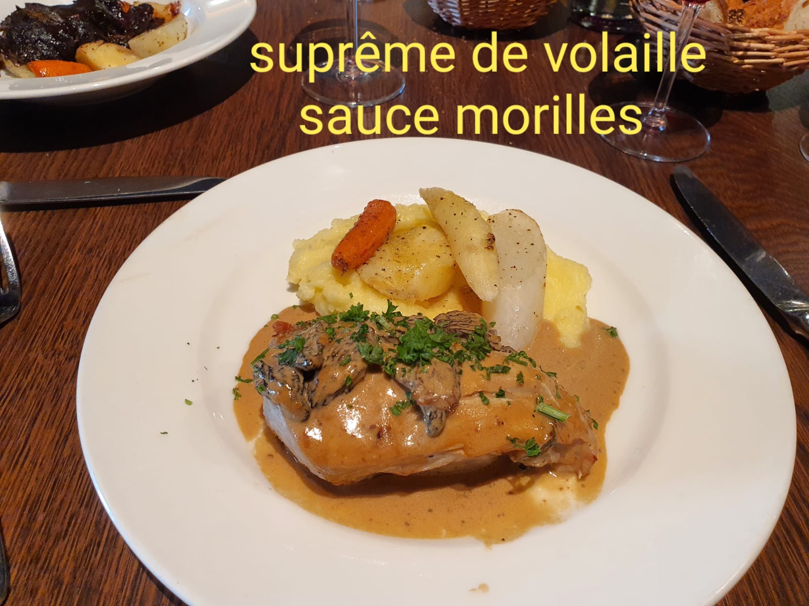 Très bon et aimable accueil, bien placé dans la salle à ma demande, très bon service, le vin était très bon; en revanche, petit défaut de cuisson du poulet (pas suffisamment cuit) et manque de morilles. Cela reste un très bon établissement.