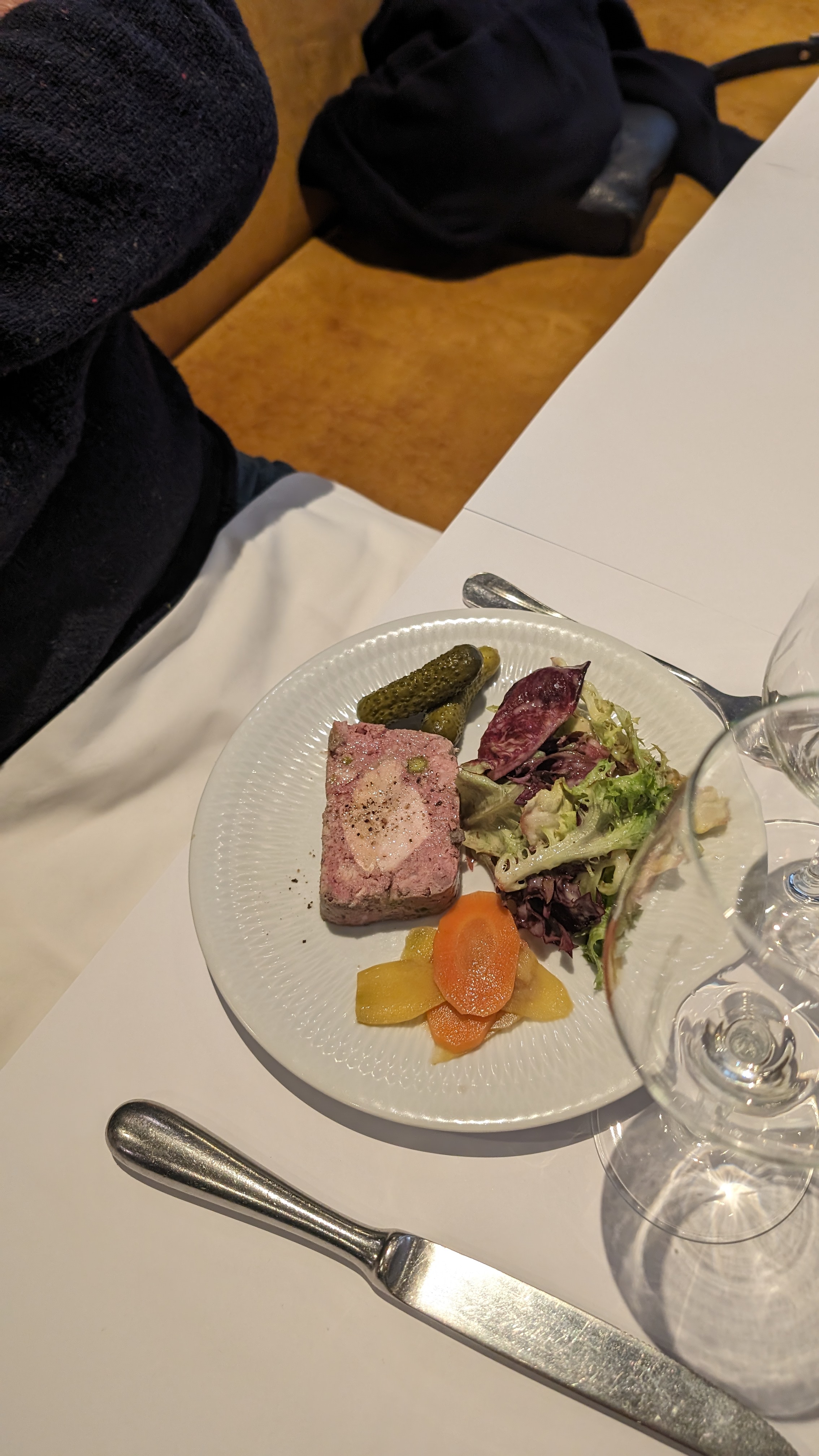 Personnel très agréable, La température des vins etait nickel, La cuisson du suprême de volaille et de l'entrecôte était parfaite. Le pain dans l'assiette pour le foie gras et la terrine de volaille était tiède et croustillant, un plus pour la dégustation. Les portions sont généreuses, nous n'avions plus faim pour un dessert. Une très bonne adresse que je recommande.