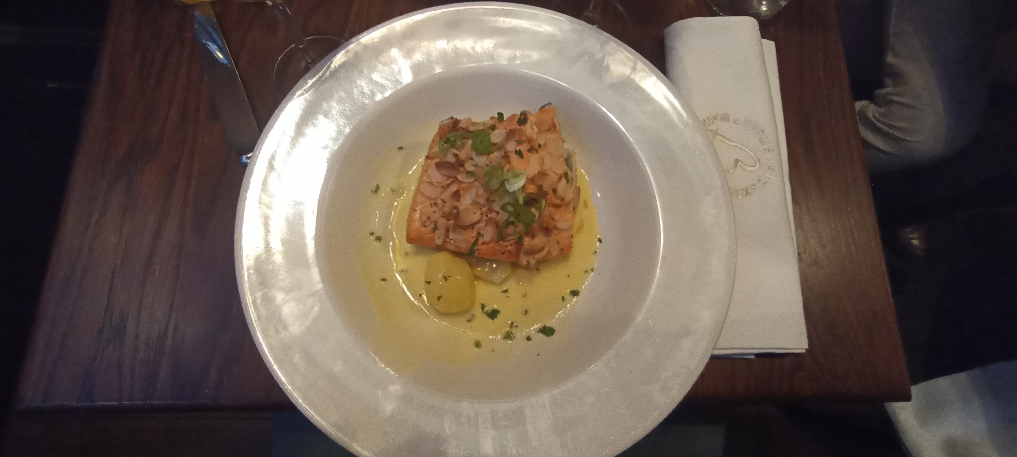 anniversaire à l'étage qui a apporté beaucoup beaucoup de bruit . Nous obligeant à demander une table ailleurs je pense que cette partie du restaurant aurait dû rester fermé pour cause de nuisances.. De plus une mauvaise aération faisait planer une odeur de cuisine ( de graisse brûlée)pas franchement agréable. Mais tout cela n'altère pas le bon service et la délicatesse des plats . Cependant à noter ce déconvenue...