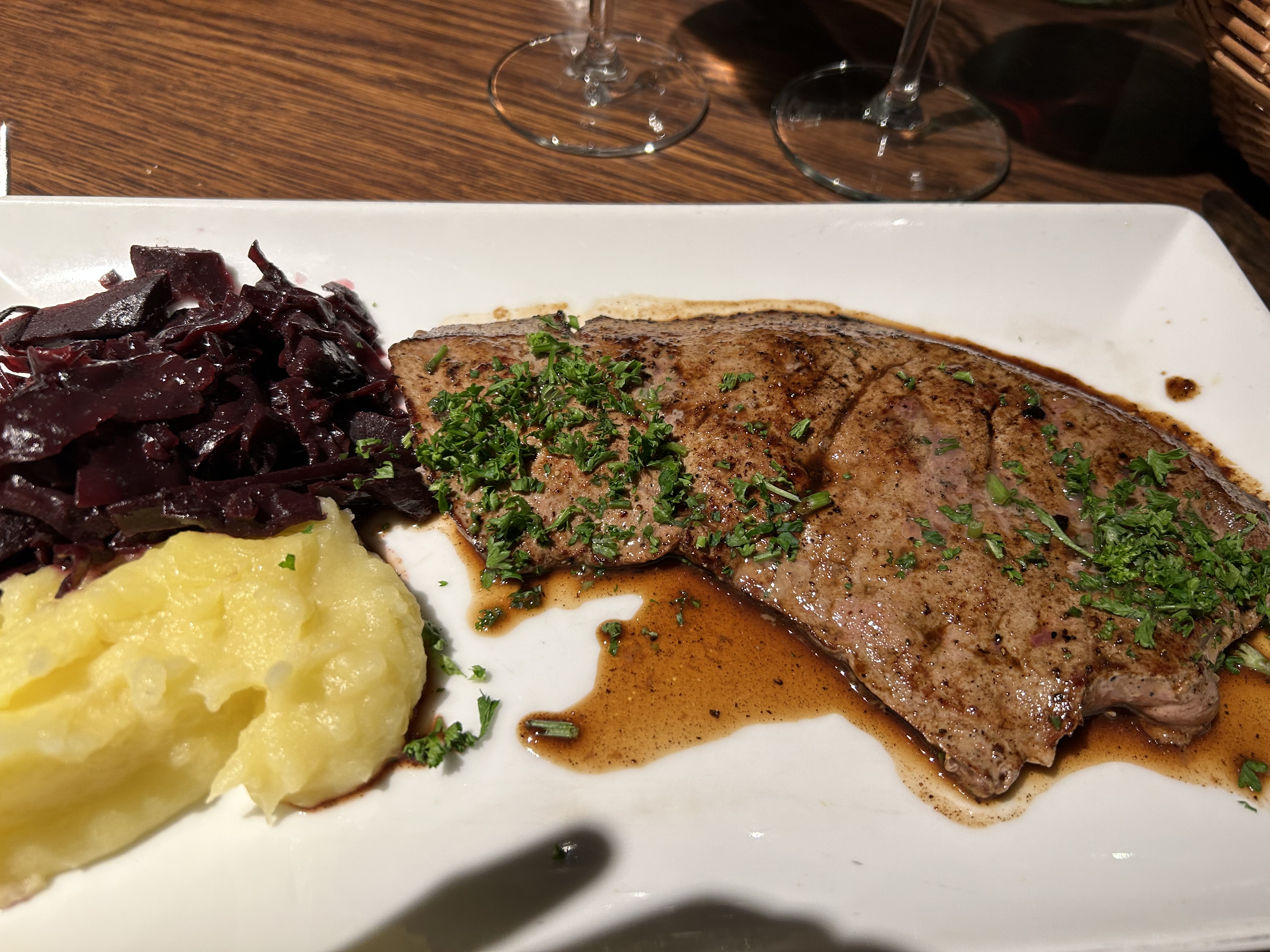 Nous avons très bien mangé, les plats étaient excellents (foie de veau, entrecôte morilles et tartares de boeuf). Cependant nous avons extrêmement attendu, 1:15 pour avoir nos plats... Nous voulions prendre un dessert mais n'avions pas le courage d'attendre. C'est dommage, service - mais cuisine ++++