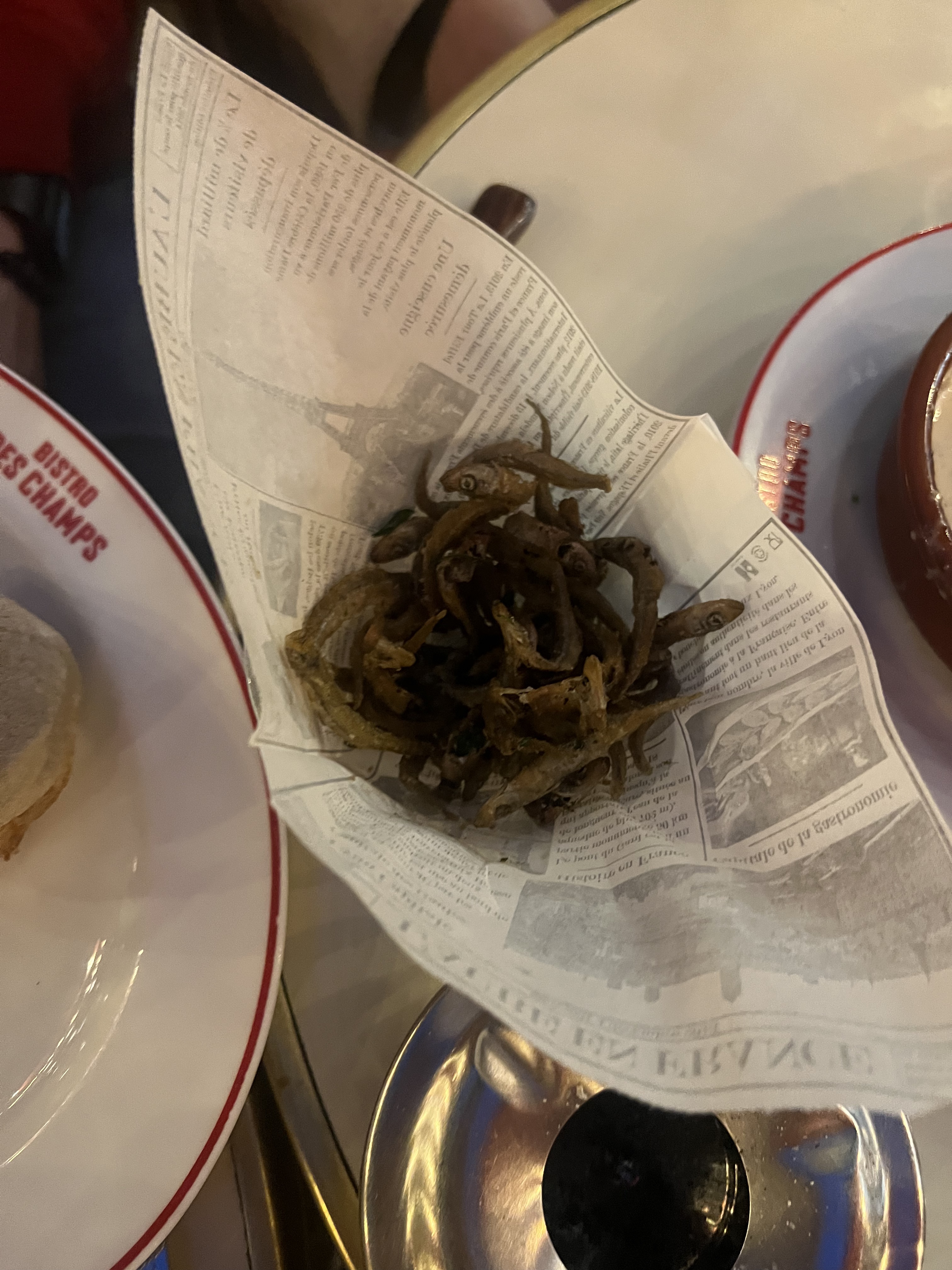 L'endroit avait l'air génial. Cependant, nous ne sommes pas allés jusqu'à Paris depuis le Tennessee pour manger des fritures qui me faisaient penser à Sonic. Notre intention était simplement de manger quelques entrées. Je me rends compte que les serveurs français ne sont pas pressés, mais nous avons dû trouver un autre serveur pour nous apporter notre chèque. Évitez les euros hémorragiques pour la nourriture Sonic.