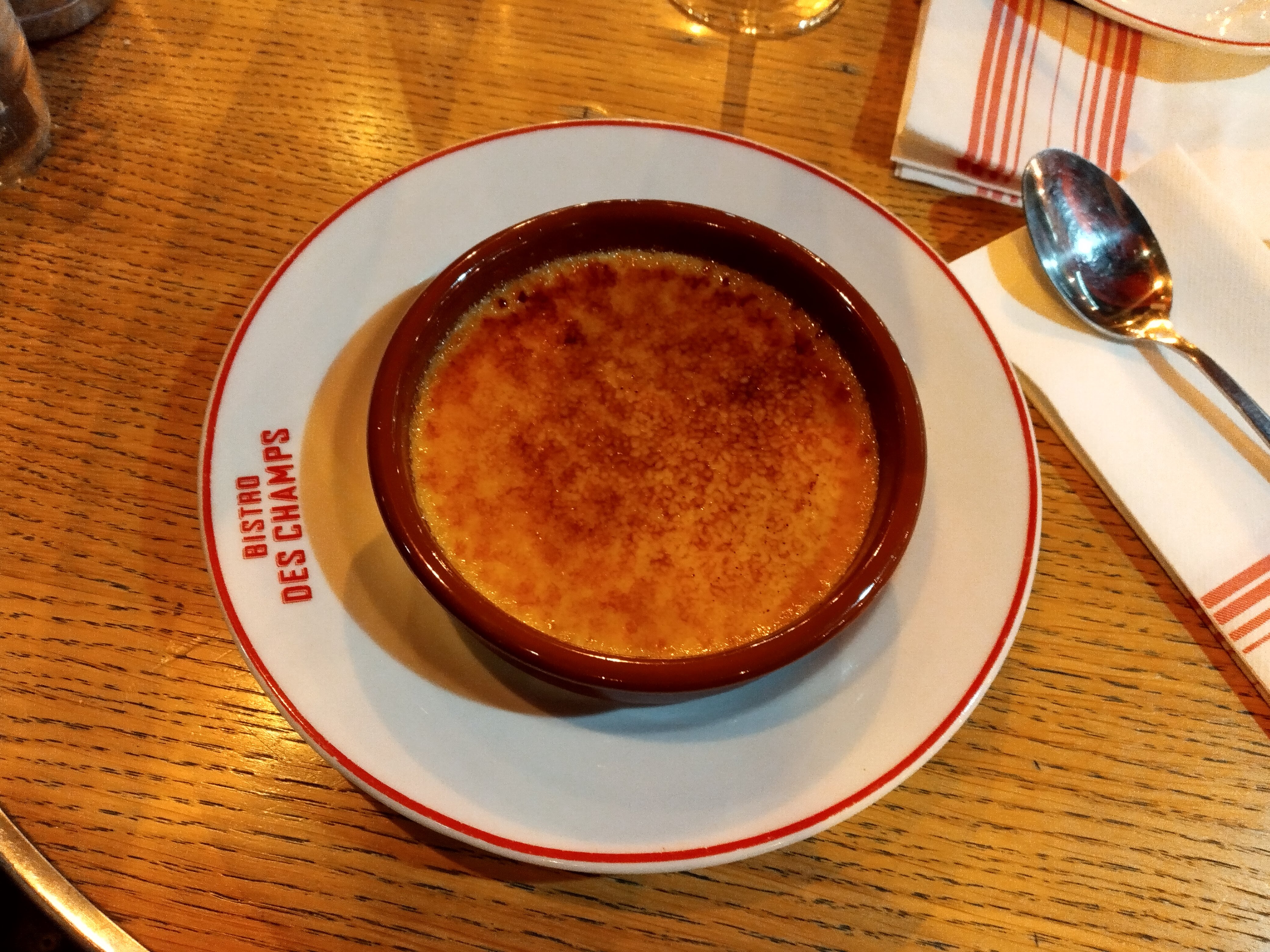 Le serveur était très charmant car nous avons pu parler français avec lui. Il a apporté une bouteille de délicieux vin rosé AOC, au goût sucré et à la température idéale. Puis ont rapidement suivi nos crêpes fromage-champignons qui étaient très bonnes. Le fromage était parfaitement fondu, les champignons avaient une texture parfaite et sentaient très frais. Peut-être que cela aurait été un peu mieux si le fromage avait été placé entre les délicieuses et fines tranches de crêpe. Le dessert (crêpe au grand Manier) avait le goût du paradis, il était sucré, contenait suffisamment d'alcool et était la friandise parfaite. De plus, les toilettes étaient très propres et la vue était belle. La nourriture était un peu chère, mais ce n’est pas étonnant à cet endroit. Je recommanderais certainement le Bistro des Champs pour un verre de vigne et une bouchée rapide.