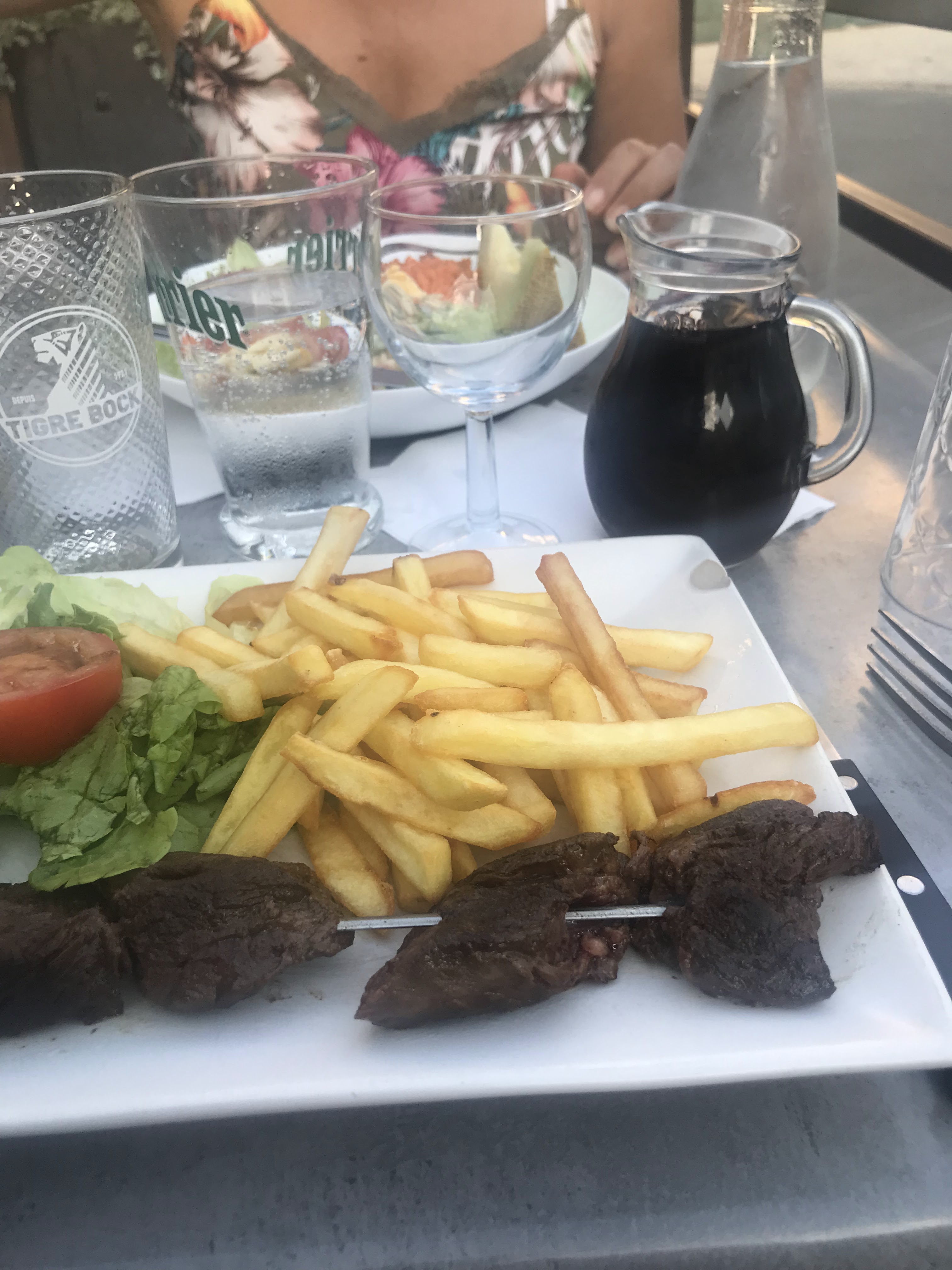 Accueil sympathique, cadre et terrasse ombragée très agréables, rapport qualité/prix excellent, la brochette d'onglet est fantastique 👌🏼