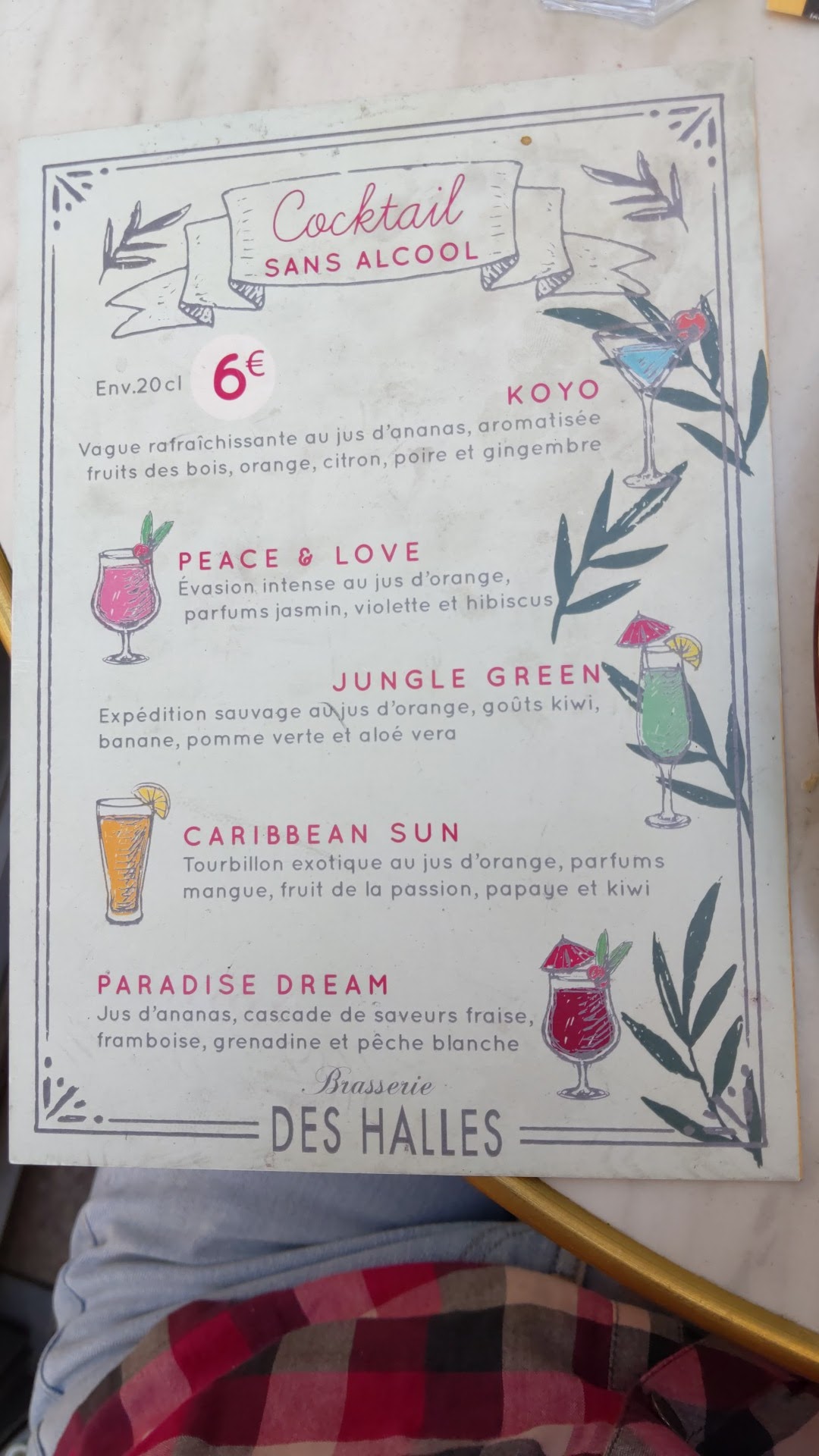 Passer votre chemin... Très gros problème sur le service et cuisine sans plus. Une équipe de serveur complètement désorganisée à l'exception d'une serveuse (jeune femme blonde, agréable, dynamique et sympathique, merci a elle d'avoir sauvée ce dîner). L'attente est interminable de l'apéritif au dessert malgré une fréquentation normale. Beaucoup d'attente pour servir des salades et une pizza arrivée tiède sur la table. Le comble a été de nous servir une bouteille de vin rosé chaude sans que cela paraisse bizarre (bouteille certainement stockée à côté d'un frigo mais pas à l'intérieur) et tellement lentement que nous avions pratiquement fini de manger nos plats... Concernant la cuisine. Rien de marquant dans le sens positif du terme... Dommage pour une brasserie se trouvant aux bords des halles. Et les desserts ne sont clairement pas fait maison, crème du Paris Brest granuleuse, panna cotta insipide (faite avec de l'eau ?!), macaron décongelé etc même la glace à la vanille n'etait pas bonne. Vous trouverez facilement un restaurant plus qualitatif autour des halles