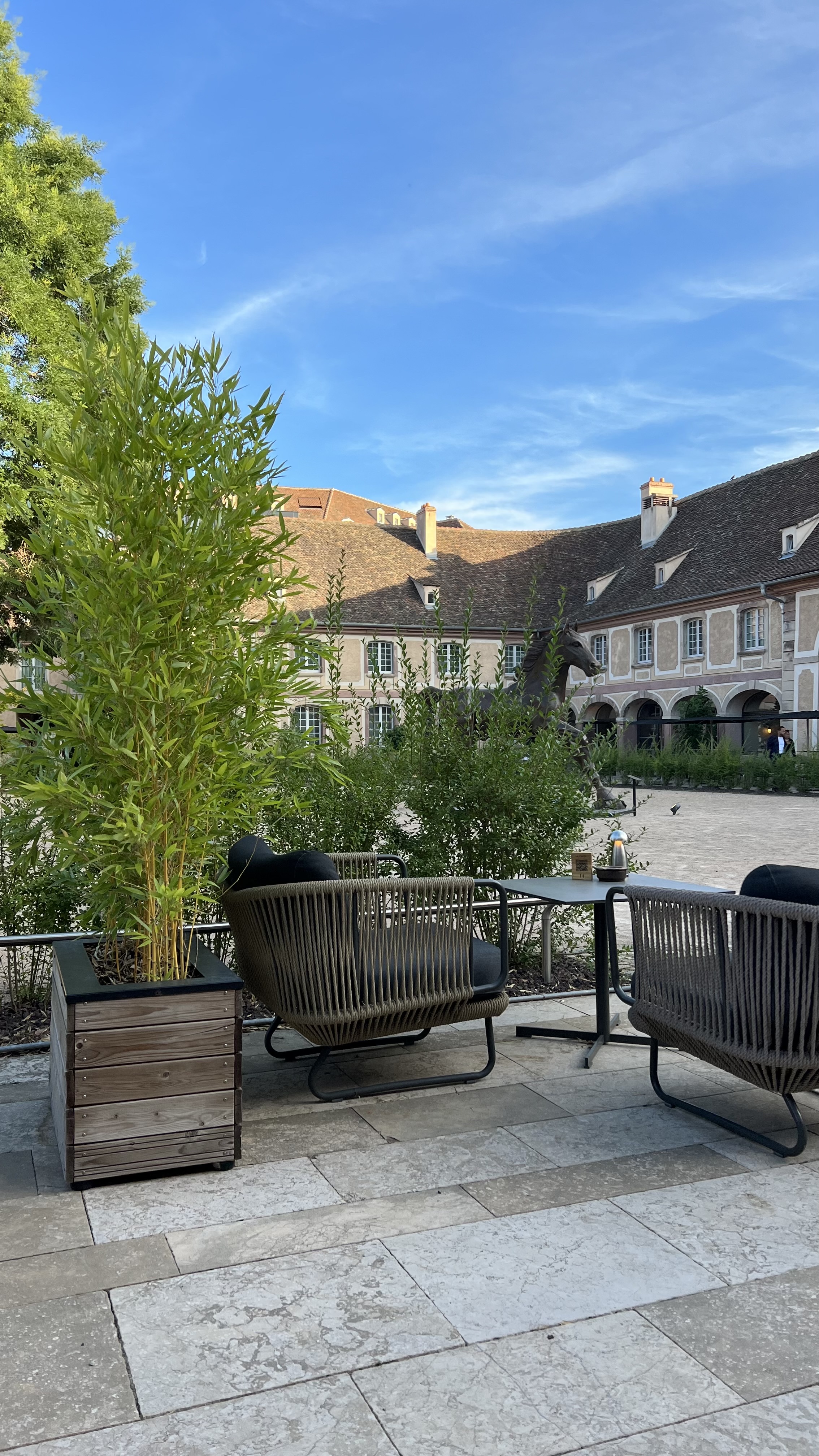 Nous nous réjouissions de découvrir cet endroit pour mes 60 ans, étant dans le domaine des chevaux, rien de plus atypique que de dîner au sein d'une ancienne écurie ou mon mari eu l'occasion dans le passé de se promouvoir. Un site magnifiquement rénové. Nous avons profité du service voiturier rien à dire, accueil charmant. Nous franchissons le seuil de ce restaurant et nous sommes accueillis par le directeur de l'exploitation. Un premier regard : notre tenue vestimentaire, oui en effet nous ne portions pas de costume ni de cravate, mais nous étions tout de même très présentables pour cette occasion. Nous ne sommes pas venus en bottes d'équitation, remplies de crottins de cheval. Bref, nous sommes conduits à l 'étage par cette personne ,qui à mon sens manquait soudainement d'empathie ! Nous empruntons un majestueux escalier, passons devant de jolies tables dans un grand espace à l'ambiance feutrée, NON, on nous installera pas à ces endroits (ces places étaient encore inoccupées deux heures après) mais tout au bout du restaurant, dans le fond d'une bulle entièrement capitonnée, on se serait cru dans un asile, il ne manquait plus que la camisole!!! sans aucune vue sur quoi que ce soit sauf la penderie. Et quelle déception quant au mobilier, une chaise entièrement tachée (certes nettoyée au dire du serveur mais au vue de son état, elle aurait pu être changé) une table riquiqui , une déco sur la table digne de Foirfouille, et j'en passe. Nous passons donc commande, 2 apéritifs, 2 entrées, 2 plats, 4 verres de vin. La carte présente des plats relativement basic. Les tarifs sont élevés mais si la qualité est là, pourquoi pas ! L' addition arrive, on nous rajoute des consommations que nous n'avions pas consommées. Conclusion : c'était correct mais pas transcendant, pas exceptionnel ! Le rapport qualité/prix n'est pas là, (nous avons laissé un billet de 200€) pour quelques Euros de plus, on peut s'offrir un repas d'exception dans un restaurant tel que la Source des Sens par exemple.. En bref un endroit où je ne retournerai pas et que je ne recommanderai pas !