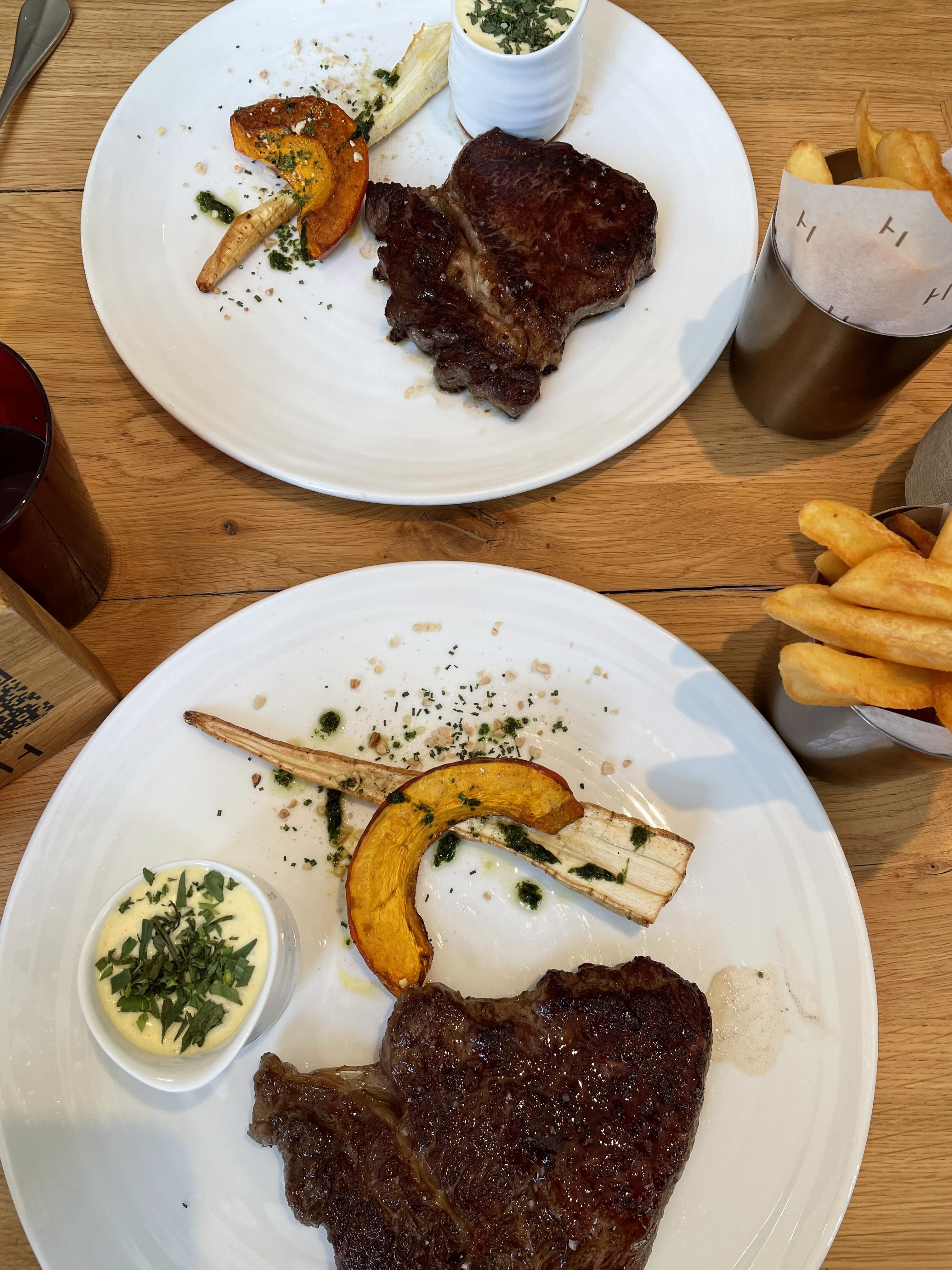 Entrées très bien Anguille et aubergine Entrecôtes pas assez tendre Mon verre de vin Cote du Rhône avec un peu trop de dépôt ! Déception par rapport au prix demandé