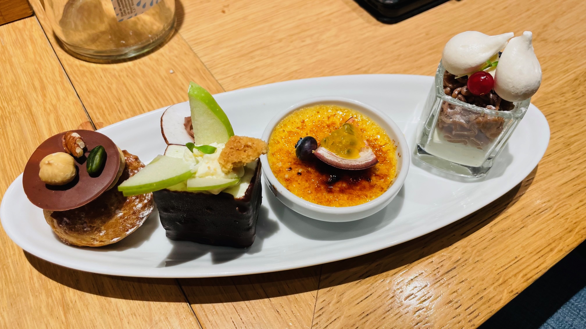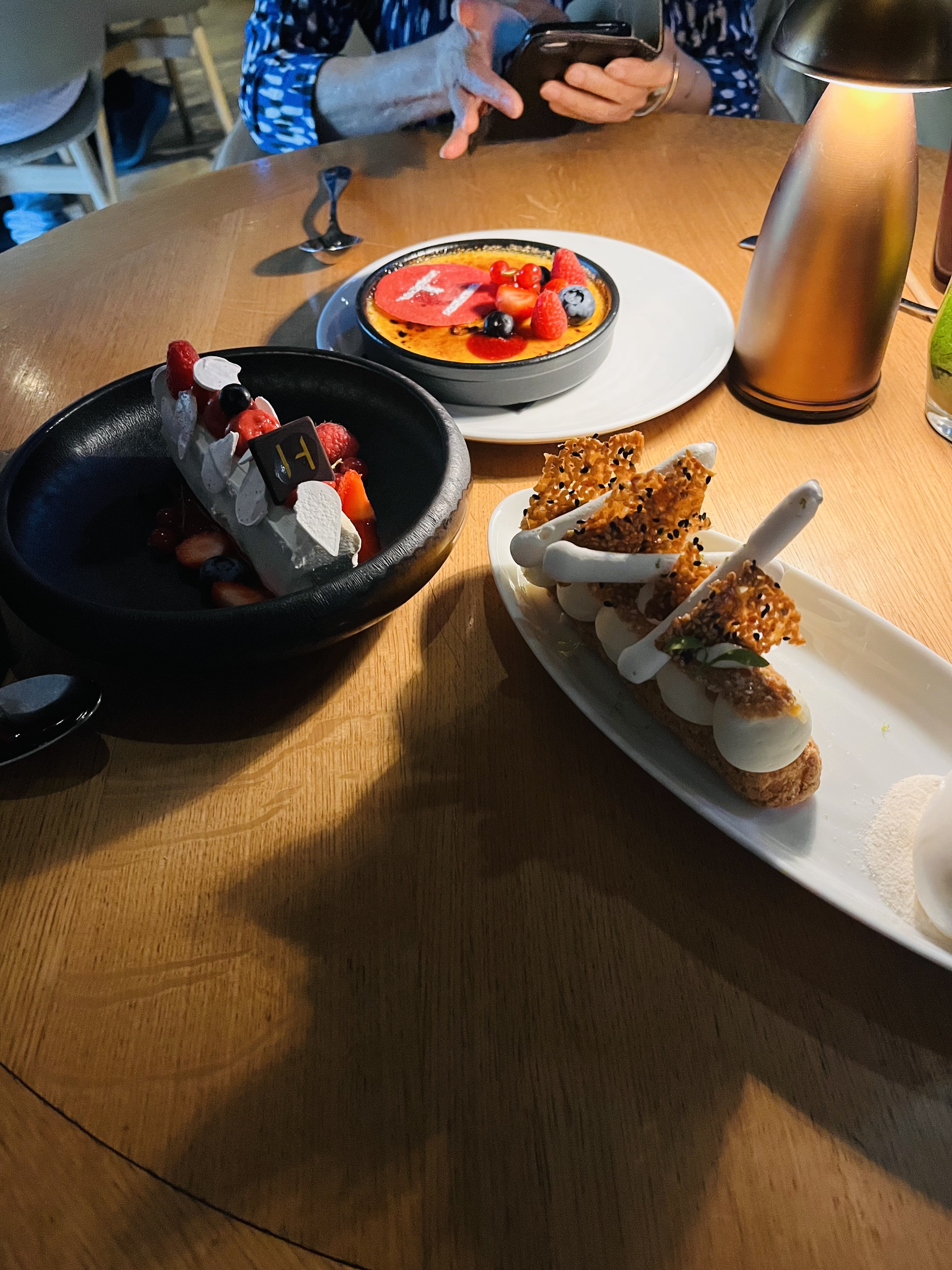 Bon service en ce qui concerne le service voiturier ! Pas d’eau gazeuse carola rouge en litre vraiment dommage.. ! On regrette l’assaisonnement de la sauce trop salé du poisson.. ! Café offert pour s’excuser on a apprécié ! Les desserts et l’entrée étaient Bons ! Quantités de certains desserts un peu réduites..