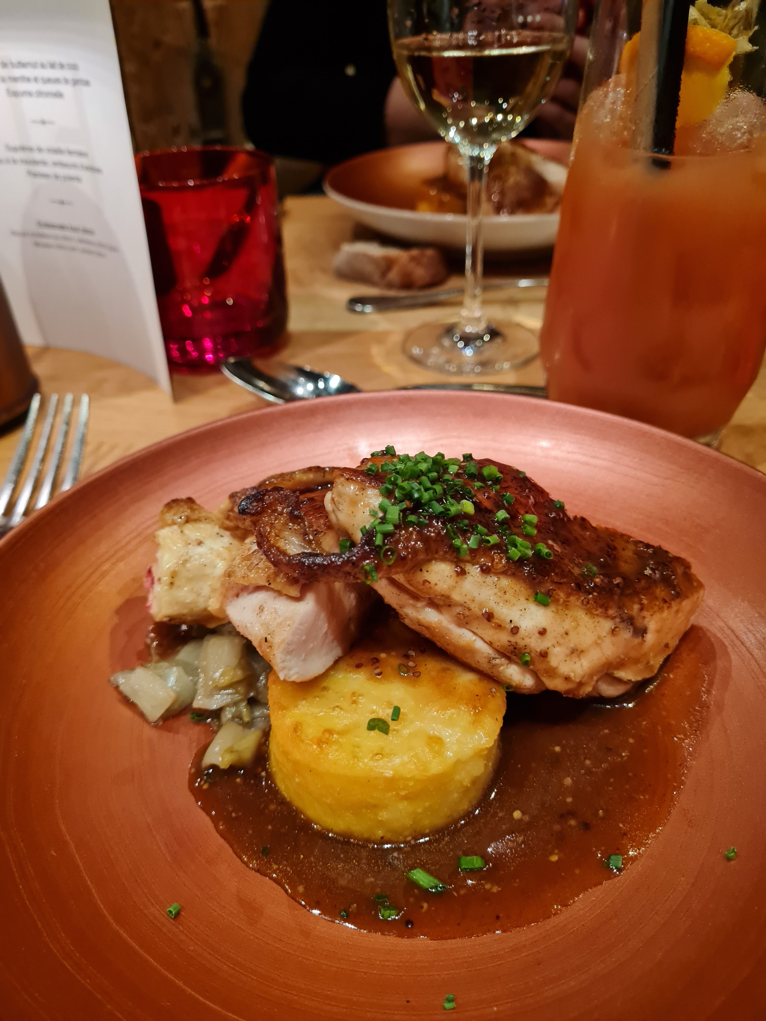 Apéritif en terrasse tres agréable ( mais les bretzels servis au début du repas auraient éte plus apprecié et appréciable avec l'apero en terrasse). Cuisine raffinée et service impeccable. Merci pour ce moment