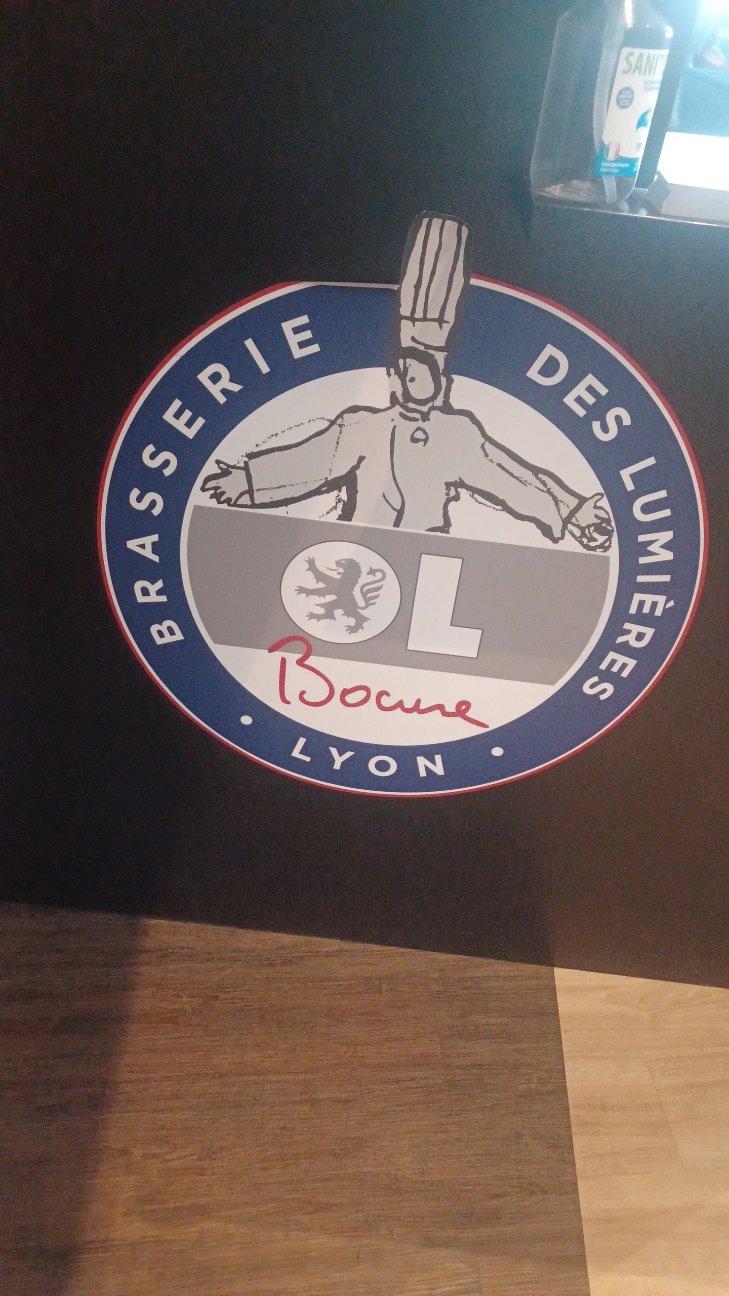expérience assez mitigé en effet l'accueil et le cadre sont très agréable expérience et très inattendue on regrette surtout la méconnaissance à l'avance du menu qui pour un tarif de 99 € avec le match et me semble-t-il un peu inadapté on regrette également les précisions sur comment va se dérouler la soirée en effet après la fin du repas et du match il est impossible de re rentrer dans la brasserie et de pouvoir accéder au bar d'ailleurs le refus a été un peu intempestif et virulent service quand a lui est assez agréable malgré certaines fautes exemple les mignardises on oubliés où est également car la mi-temps du match vu le tarif proposé pour un menu à la brasserie 99 € il n'est prévu aucun verrre la seule satisfaction de cette soirée et d'avoir rencontré le président AULAS et Bernard Lacombe je pense que monsieur Paul Bocuse serait très déçu de voir le service et la qualité des produits servis dans sa brasserie