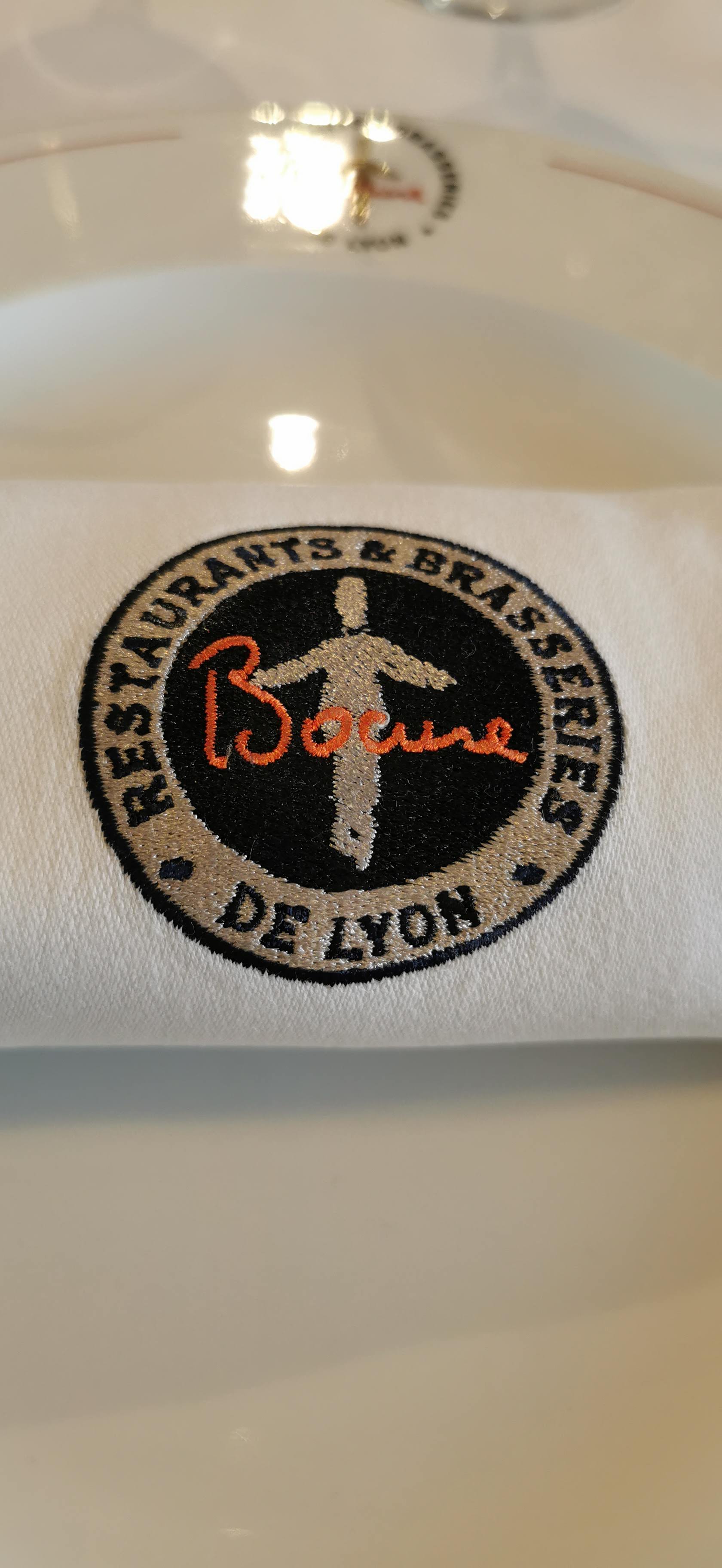 La salle de restaurant est totalement bruyante : alors que l'établissement a moins de 5 ans, on ne remarque pas d'absorbeur phonique pour atténuer les bruits de la salle. Rien à redire au niveau de la qualité des plats. On en attendait pas moins d'un resto de Paul Bocuse même s'il s'agit d'une brasserie. Néanmoins c'est de l'accueil et des l'accompagnement des clients qu'il faut vraiment revoir la copie !!! Beaucoup d'attente... aucune anticipation avec les condiments etc. Il faut réclamer par 2 ou 3 fois du pain tout au long du repas, la moutarde aussi n'est pas proposé avec de la viande pourtant, le sucre n'est pas amené directement sur le plateau avec les cafés, faut attendre la cuillère pour le dessert... Pour le papier du menu préparé à l'avance et présenté sur table, une grosse faute comme un et jointait les deux propositions de entrées, plats et dessert... alors que nous ne mangions qu'un choix sur les deux. Aussi la tarte aux poires proposée dans notre choix de menu a été remplacée par un St Honoré... qui n'aurait pas été à mon goût lors de la prise de décision !