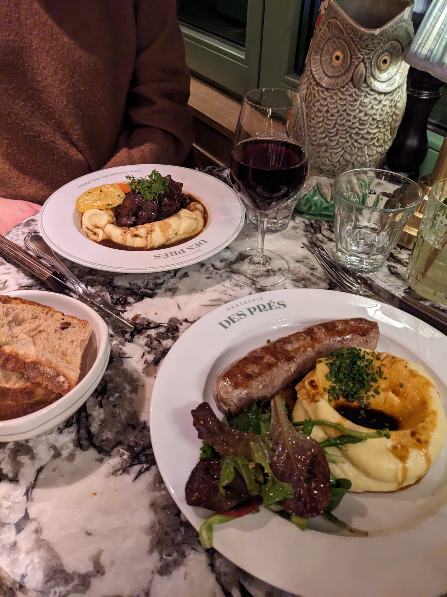 Comme d’habitude un bonheur !! Entrée / Plat / Dessert + un verre de vin, on en a eu pour 37€ par personne, c’était bon, mention spéciale pour Timothée et Angèle nos deux serveurs parfait !